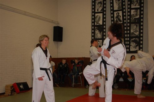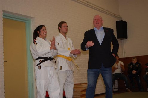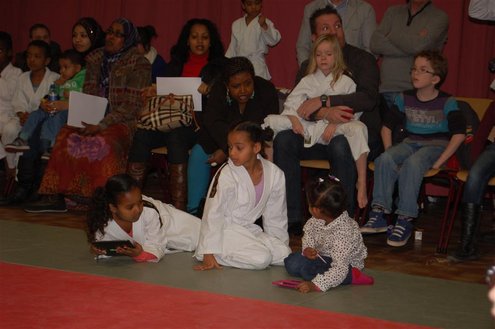 Gisteren kwam de lang gekoesterde droom van An Ramirez uit en werd haar eigen sportschool geopend in Buurtcentrum De Kooi aan de Driftstraat. Niemand minder dan haar voormalige leraar Aad van der Luit verrichte de opening. De belangstelling van buurtbewoners was groot en na de opening kon het publiek genieten van een aantal Judo- en Jujutsudemonstraties. (Foto’s: Emile van Aelst.)