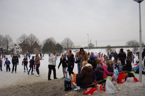 Als de weermannen en – vrouwen gelijk hebben, treedt na dit weekend de dooi in en is het afgelopen met de ijspret. De ijsbaan in de Stevenshof zet alles op alles om de laatste dagen een prachtige baan te houden. Vanavond wordt er opnieuw water overheen gespoten, zodat het ijs morgen er weer als een spiegeltje bij ligt. Afgelopen zaterdag was de opening en dagelijks trekken honderden enthousiaste mensen en kinderen de schaatsen aan om hier van het ijs te genieten. Ook binnen is het goed toeven, lekker warm en gezellig. Emile van Aelst maakte een fotoverslag