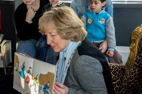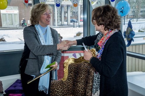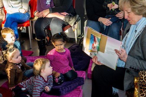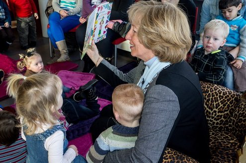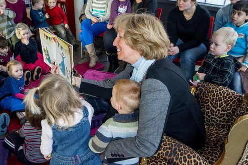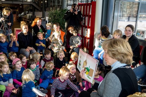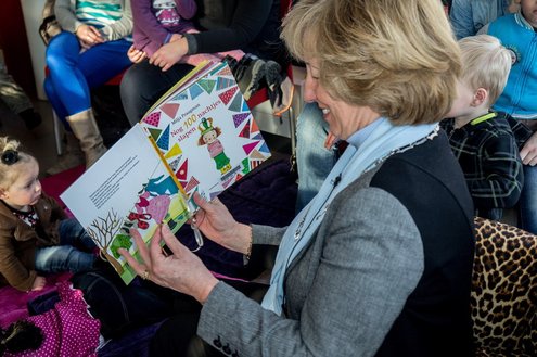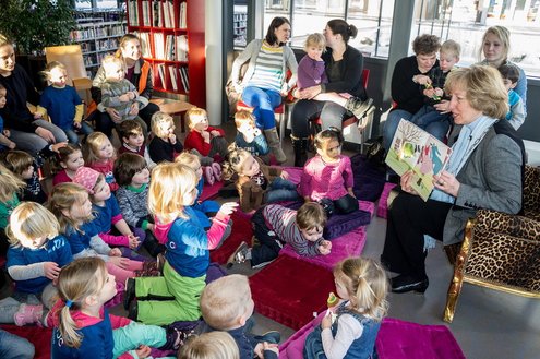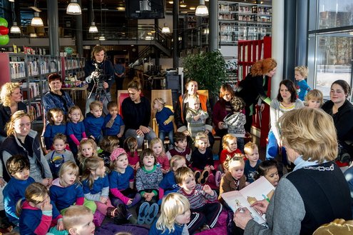 Gisteren las burgemeester van Leiderdorp, Laila Driessen, de kinderen van verschillende kindercentra, S.K.L. en Catalpa voor uit het prentenboek ‘100 nachtjes slapen’. De kleintjes luisterden ademloos toe en genoten van het verhaal en de leuke platen van dit kinderboek van het jaar, geschreven en geïllustreerd door Milja Praagman. De ‘burgermoeder’ bleek voorleestalent te hebben en nam alle tijd voor haar jonge publiek. Na afloop was er drinken en lekkers voor de kids en de burgemeester ontving als dank een jaarabonnement voor de bibliotheek.