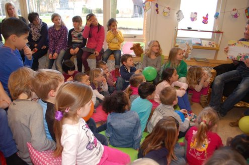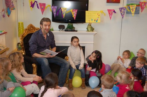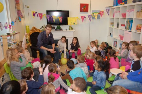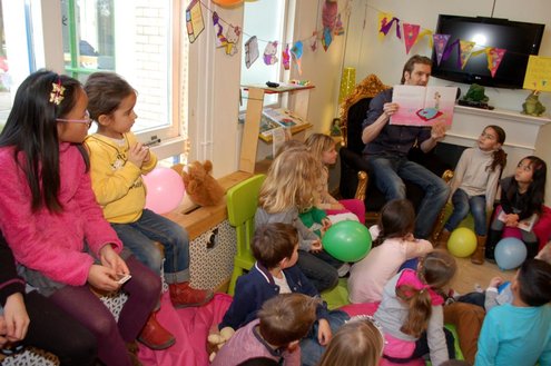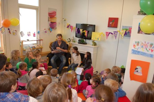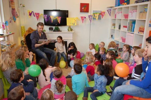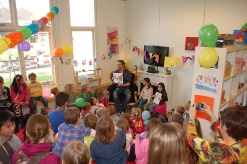 Gisteren las Bas Muijs, bekend van de Nederlandse soap GTST, de kinderen voor van BSO ’t Kweklokaal in de Stevenshof. Ademloos luisterden de kids naar het leuke verhaal en keken naar de mooie illustraties van het prentenboek van het jaar: ‘100 nachtjes slapen’. Emile van Aelst genoot mee!