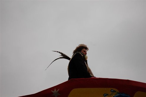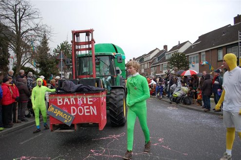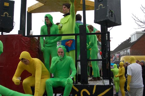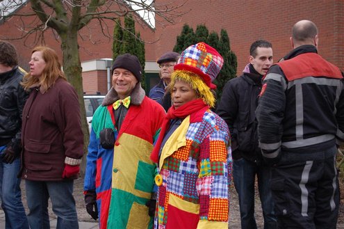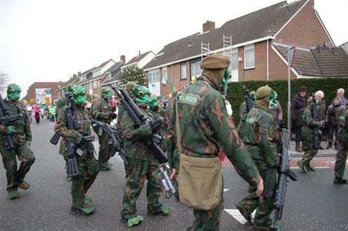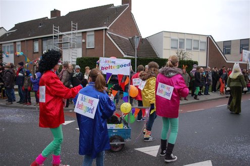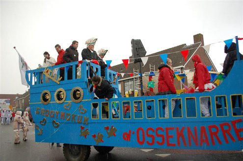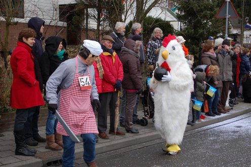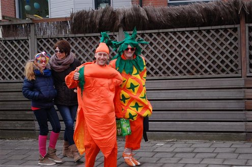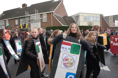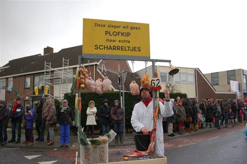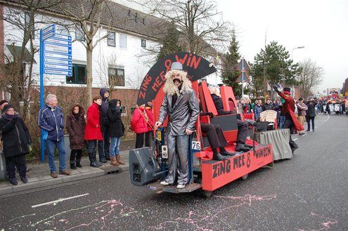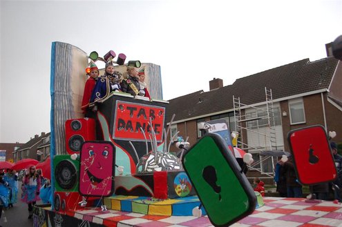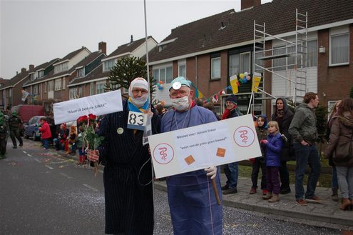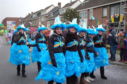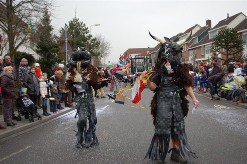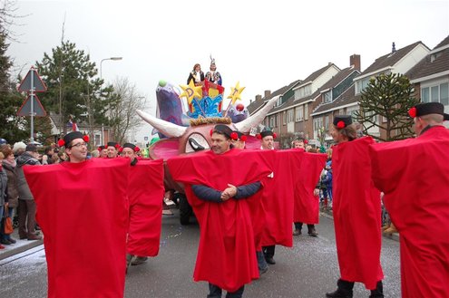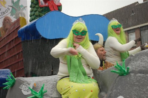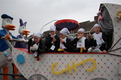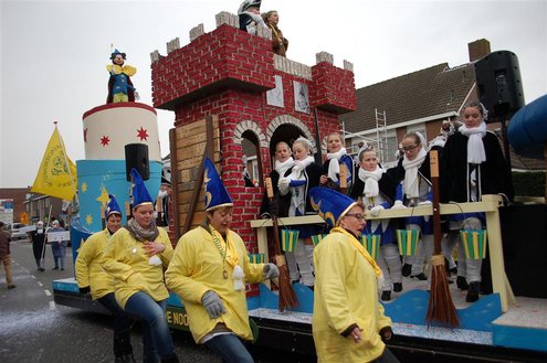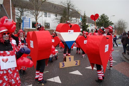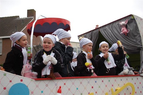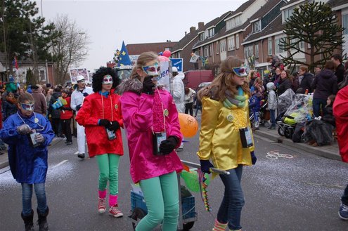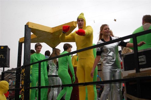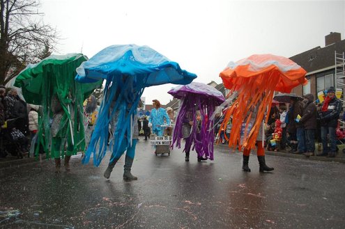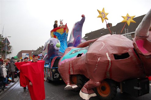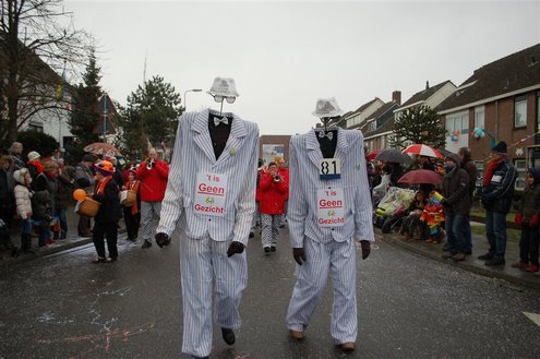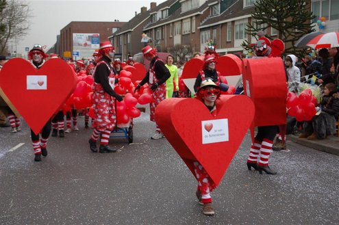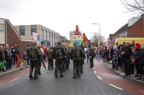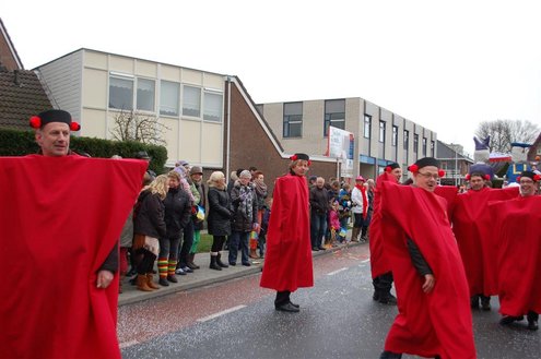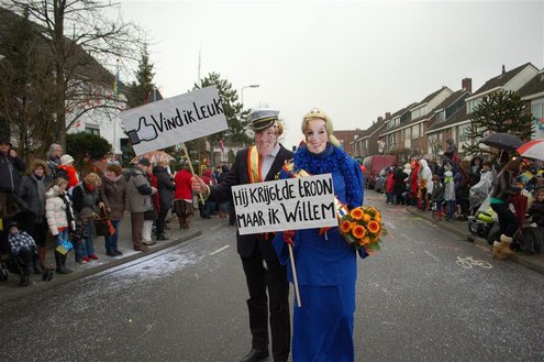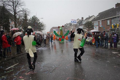 Onder de vrolijke klanken van diverse blaaskapellen, drumbands en fanfares trok vandaag een gezellige carnavalsoptocht door Noordwijkerhout. Na een goed maar enigszins koud begin, begon het even later volop te sneeuwen en viel de optocht niet in het water, maar in de sneeuw. Toch mocht het voor de meeste toeschouwers en de enthousiaste deelnemers de pret niet drukken. (Foto’s : Emile van Aelst)