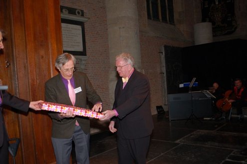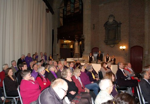 De Scratch Muziekdagen Leiden die jaarlijks in de Pieterskerk plaatsvinden, bestaan 25 jaar. Gistermiddag nam burgemeester Lenferink het eerste exemplaar van het boek ‘De Scratch in Leiden 1988-2013′ in ontvangst in de Pieterskerk. Het boek is onder andere samengesteld door bijdragen van bezoekers aan de scratchdagen en vier van hen kregen een prijs aangeboden tijdens de presentatie. Enkele vrijwilligers werden in de bloemetjes gezet. Het 25-jarig bestaan wordt gevierd met vijf Scratch-dagen in plaats van vier. Ze vinden plaats op 15, 16, 17, 23 en 24 februari. Iedere avond is er een ander programma. Met een koor en orkest van bijna duizend mensen dat alleen voor die dag bij elkaar is gekomen, wordt er één dag gerepeteerd. ’s Avonds is de uitvoering. De restaurants en winkels in het Pieterskwartier dragen bij aan de feestelijkheid. De restaurants bieden een snel Scratch-menu aan en een aantal van de bijzondere speciaalzaakjes in het Pieterskwartier geeft een aantrekkelijke Scratch-korting. De deelnemers krijgen in de Pieterskerk een flyer met 15 euro aan waardebonnen uitgereikt. Meer informatie over dit muzikale evenement staat op www.scratchleiden.nl