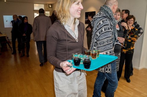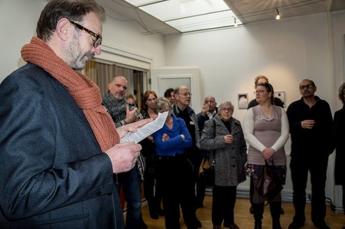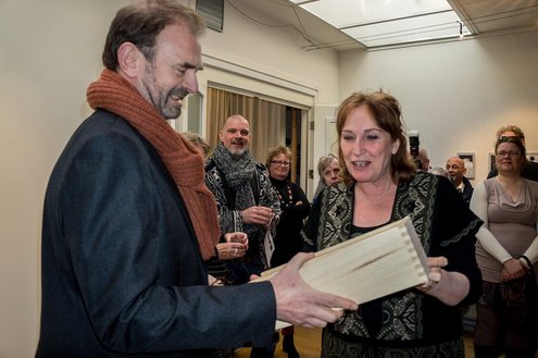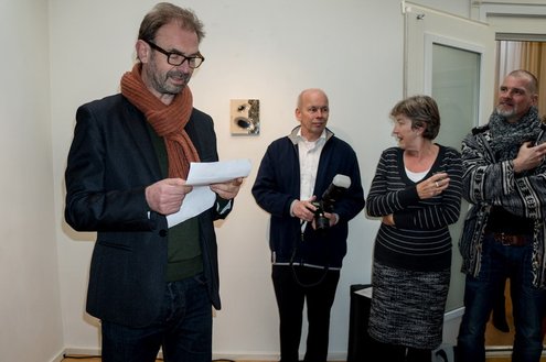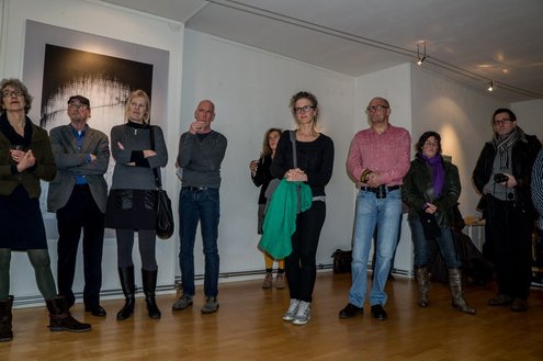 Afgelopen middag opende kunsthistoricus Aart van der Kuijl de bijzonder expositie van Inge Reisberman in Galerie Petit Port aan de Herenstraat. Op de tentoonstelling, die te zien is in de etalages van de galerie tot en met 15 april, laat Reisberman een intrigerende fotoserie zien van allerlei lichteffecten onder de titel ‘Lightseeing’. Ze bewerkt haar foto’s in lagen naar een hoge mate van abstractie op een manier die aan een schilderproces doet denken, waardoor een mengvorm ontstaat tussen fotografie en schilderen. Fotograaf J.P Kranenburg was voor Sleutelstad op de opening.
