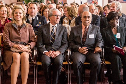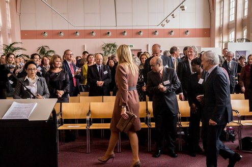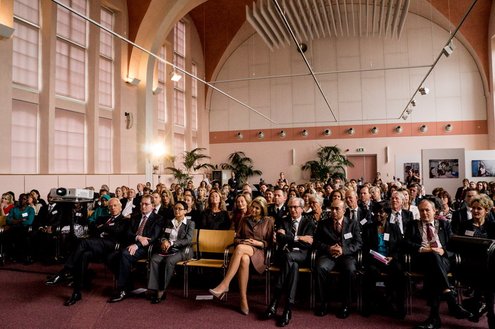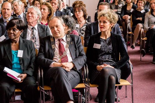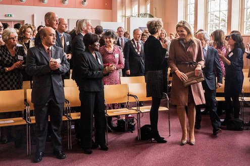 Gisteren nam Prinses Máxima het eerste exemplaar van het boek ‘Een wereld zonder Baarmoederhalskanker’ in ontvangst uit handen van prof. dr. Lex Peters. Peters is hoogleraar Gynaecologie aan het Leids Universitair Medisch Centrum (LUMC) en oprichter van de Female Cancer Foundation (FCF). De feestelijke bijeenkomst werd gepresenteerd door Eva Jinek. Burgemeester Lenferink en commissaris van de Koningin, Jan Franssen begeleidden de Prinses. Tijdens de boekpresentatie vertelden lokale projectmedewerkers van de FCF over de noodzaak om in hun land deze ziekte aan te pakken en over eenvoudige, maar effectieve behandelingen die zij vrouwen aanbieden. Het boek is geschreven door Patricia Jacob en Chantal Spieard maakte de foto’s van het werk van prof. Dr. Peters en de FCF in Indonesië, Afrika en Bangladesh. (Foto’s: J.P.Kranenburg.)