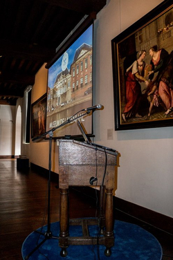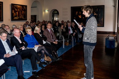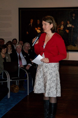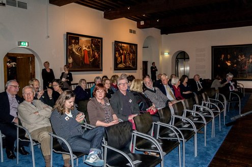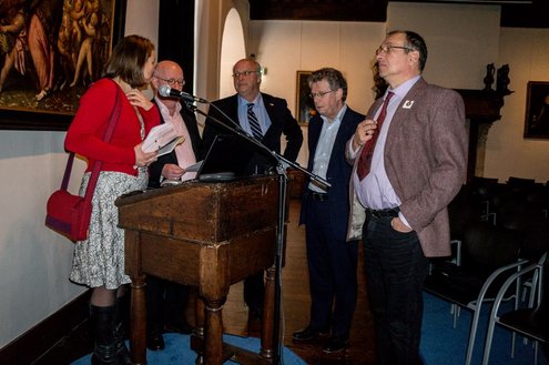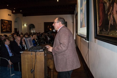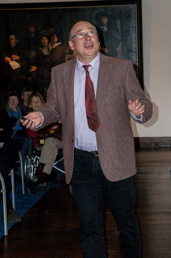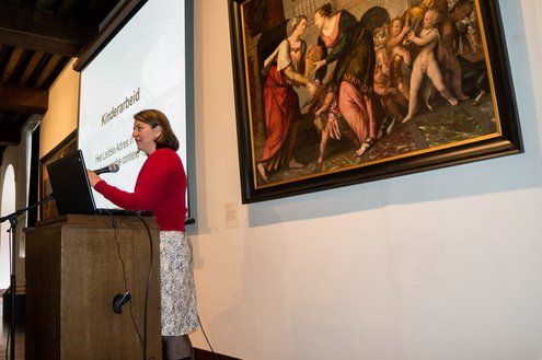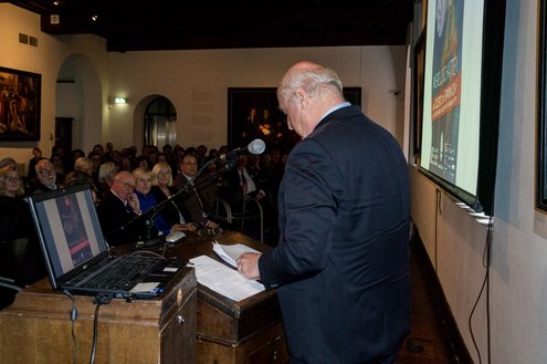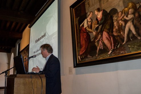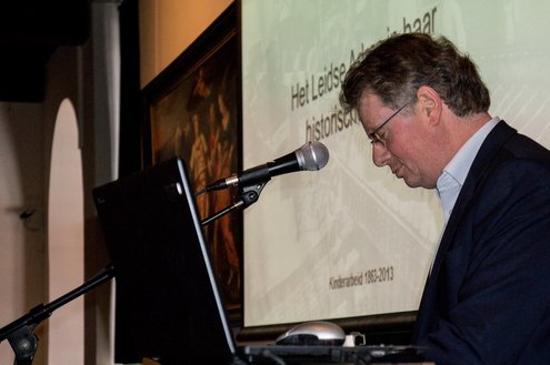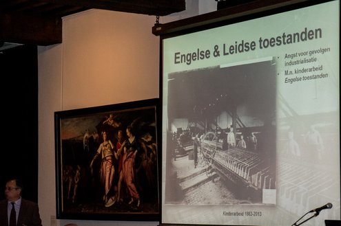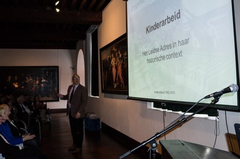 Bas Maasen van De Veenfabriek opende gistermiddag de bijzondere herdenking van ‘het Leids Adres van 1863’ in Museum De Lakenhal. 150jaar geleden stelde schrijver J.J. Cremer in zijn novelle ‘Bede, doch niet om geld’ het leven van fabriekskinderen aan de orde. De omstandigheden van deze kinderen, die in de Leidse industrie werkten, waren erbarmelijk. Opmerkelijk genoeg richtten de Leidse fabrikanten zich tot de koning per brief met het verzoek om werktijden en onderwijs voor kinderen wettelijk te regelen. Op 17 maart 1863 kwam dit ‘voortvarend adres’ tot stand. Het was een interessante middag in het museum met diverse sprekers. (Foto’s: J.P.Kranenburg.)