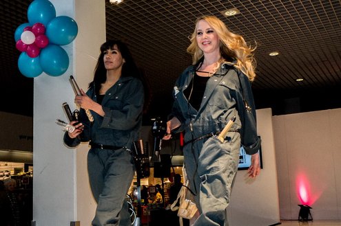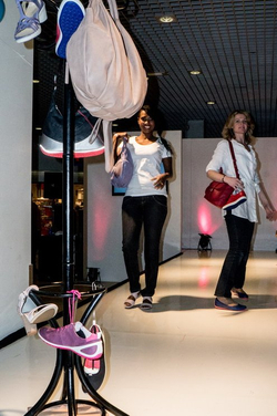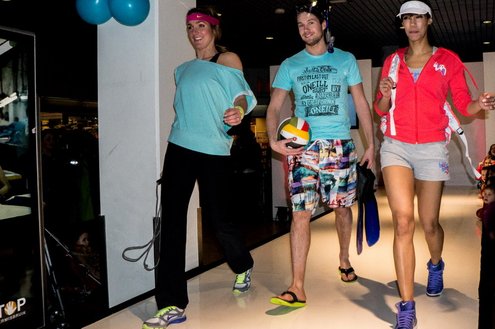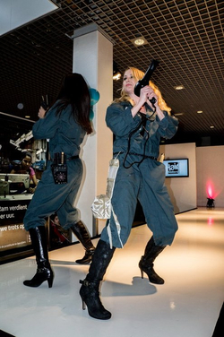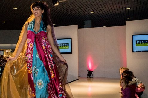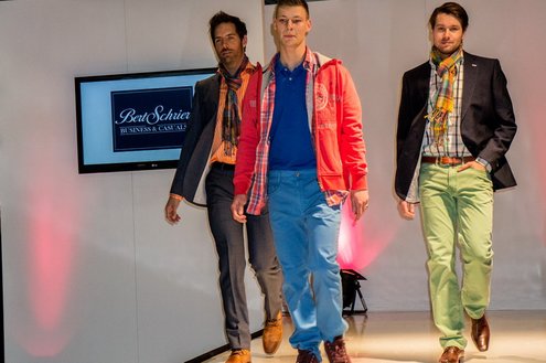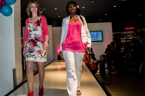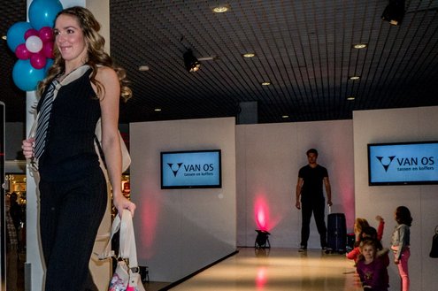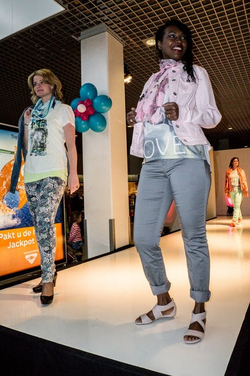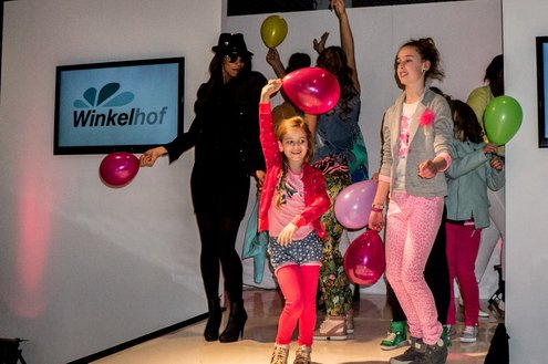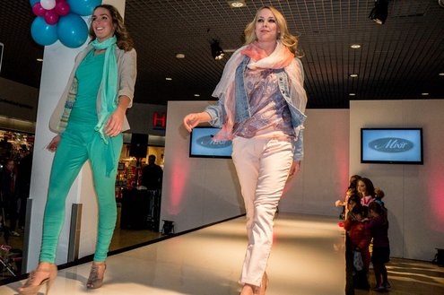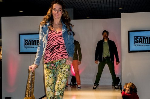 Gisteren vond een spetterende modeshow plaats in de Winkelhof. Op de catwalk werd de nieuwste lente- en zomermode voor dames, heren en kinderen getoond. Onder grote belangstelling van het winkelend publiek waren naast de ‘casual look’ ook feestelijke outfits en sportkleding te zien. (Foto’s: J.P. Kranenburg)