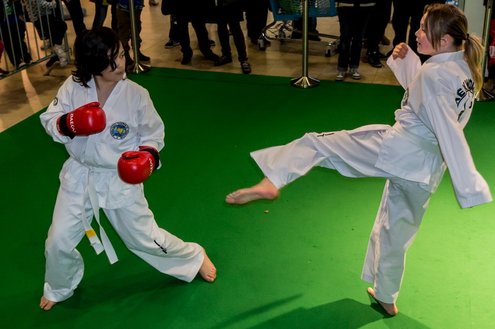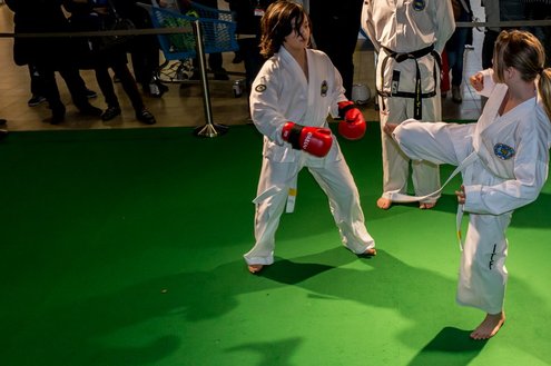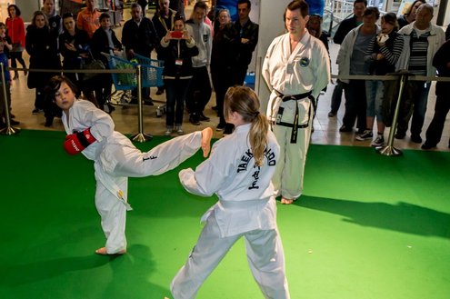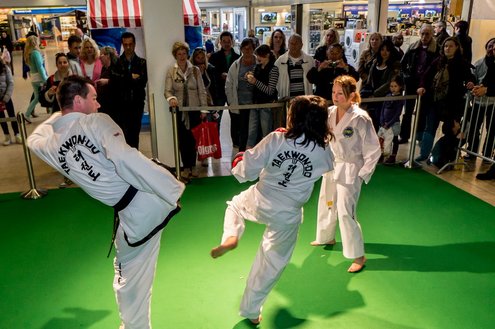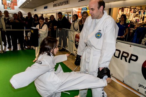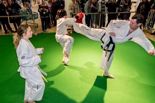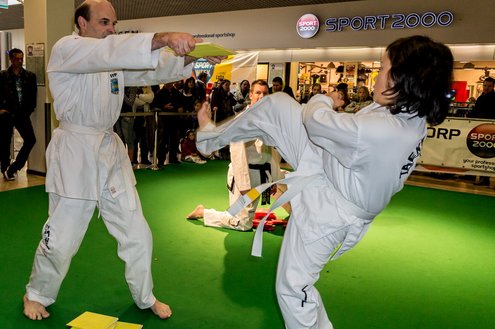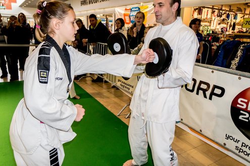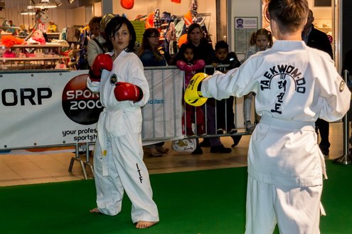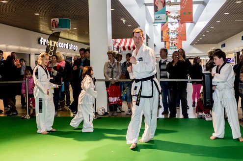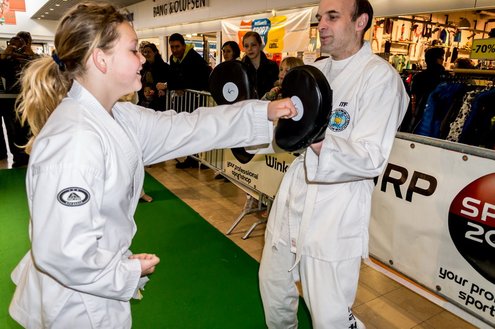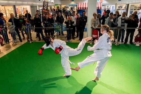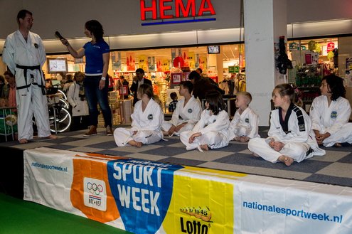 Gisteren gaf burgemeester Layla Driessen het startschot voor de Nationale Sportweek Leiderdorp in de Winkelhof. Kinderyoga Brenda, Taekwondo Dojang Leiderdorp, Kapap Europe en SportCity verzorgden sportieve workshops. De Nationale Sportweek is een landelijk initiatief waarbij, naast de start van gisteren, ook een verfrissend algemeen aanbod met onder andere proeflessen van Pluspunt Leiderdorp, een Nordic Walking workshop, proeflessen bokscamp en bootcamp vertegenwoordigd zijn. Meer info en volledig programma: www.sportleiderdorp.nl ( Foto’s : J.P. Kranenburg.)