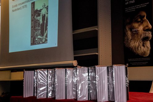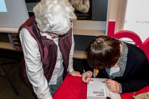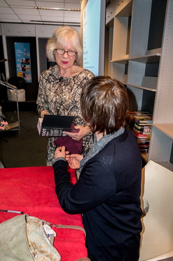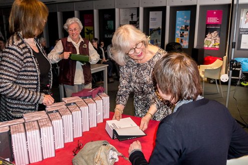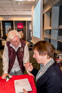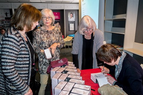 Els Kloek, verbonden aan het Huygens ING, gaf gistermiddag een interessante lezing bij boekhandel Selexyz Kooyker over haar boek ‘1001 vrouwen uit de Nederlandse geschiedenis’. Spraakmakende vrouwen, zoals Trijntje Keever, Marie du Moulin, Judith Leyster, Maria Gartman en Trix Terwindt speelden een opmerkelijke rol in het verleden van Nederland. Kloek werkte ruim tien jaar samen met meer dan 300 deskundigen aan het monumentale naslagwerk, dat deze onbekende, maar zeer invloedrijke vrouwen voor het voetlicht brengt. Het boek leest als een spannende dwarsdoorsnede van 1000 jaar Nederlandse geschiedenis. Aansluitend volgde een signeersessie. (Foto’s: J.P.Kranenburg.)