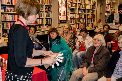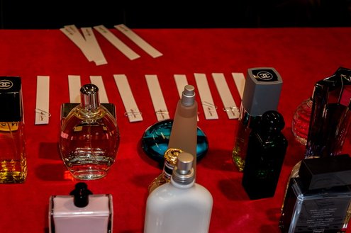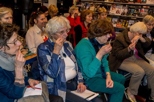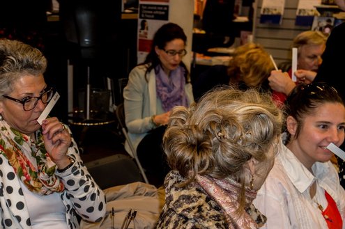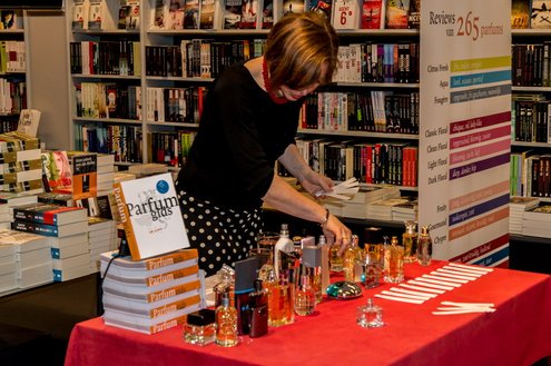 Gistermiddag gaf parfumconsulent Roos Lubbers een parfumworkshop bij boekhandel Selexyz Kooyker. In haar onlangs verschenen ‘Parfumgids’ geeft Lubbers reviews van ruim 260 geuren van alle bekende merken als Boss, Chanel, Dior en Guerlain, ingedeeld in 14 ‘geurfamilies’. De bezoekers werd geadviseerd zonder extra luchtjes aan de workshop deel te nemen, zodat ze onbevooroordeeld konden ‘voelen met hun neus’. Sleutelstadfotograaf J.P.Kranenburg raakte enigszins bedwelmd, maar was wel onder de indruk van de wereld achter deze lucratieve industrie en de kennis van de schrijfster/consulente.