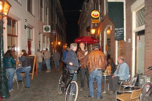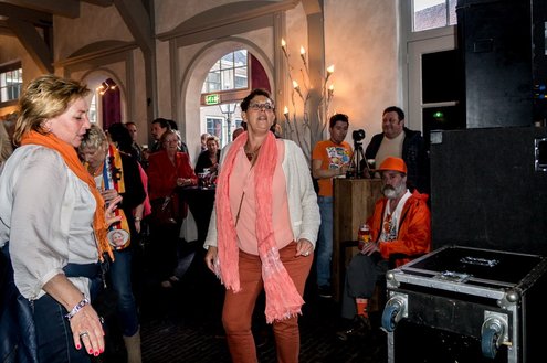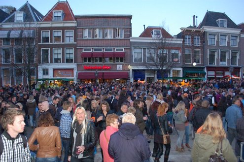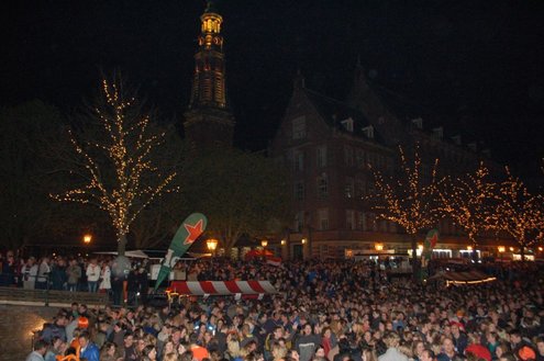 Gisteravond barstte de laatste Koninginnenacht los; volgend jaar Koningsnacht? Behalve langs en rondom de Nieuwe Rijn was het niet zo druk in de stad. De pontons stroomden al snel vol vanwege het optreden van ‘Out of Control’ op de Koornbeursbrug. Ook het Stadhuisplein en het ‘Trouwstraatje’ waren afgeladen met feestgangers en muziek. In allerlei Leidse kroegen traden bandjes op. Koetshuis de Burcht vierde tevens een verbouwingsfeestje met optredens van onder andere Danny Plezier, Jose,The Shoes en Naomi. Emile van Aelst en J.P. Kranenburg maakten voor Sleutelstad een fotoreportage.