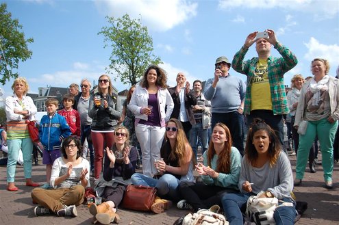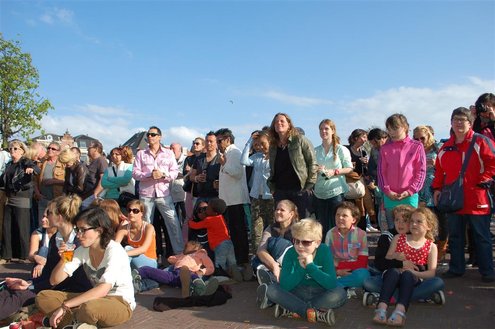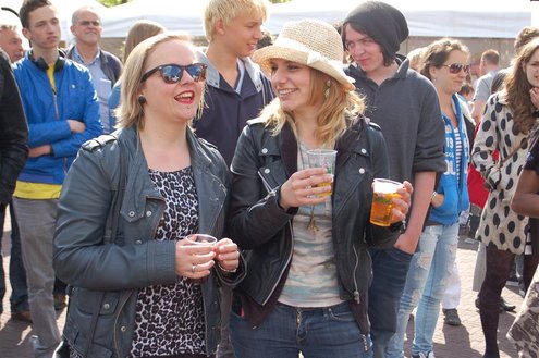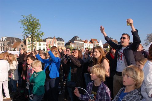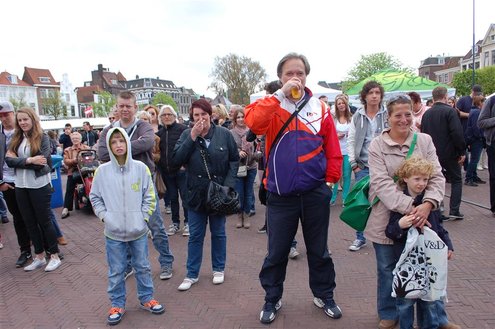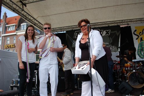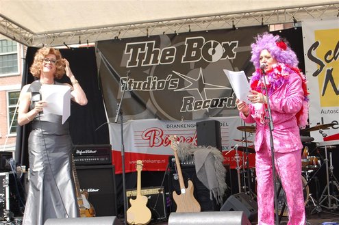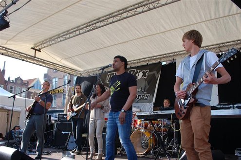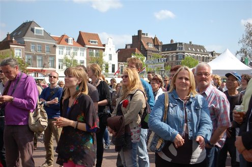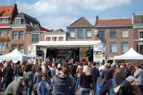 Gisteren, op Hemelvaartsdag, vond voor de derde keer op rij het Hutspop Festival plaats op de Beestenmarkt. Het weer werkte goed mee en het was een gezellige drukte. De opbrengst van het festival is bestemd voor de Hutspop Foundation, die gratis muzieklessen verzorgt voor kinderen, die anders buiten de boot vallen. De presentatie was in handen van Leidse Til en Christine Carington (Lorenzo van Beek). Zes bands traden op, waarvan er drie doorgaan naar de finale tijdens het Pleinfestival op 31 augustus. De finalisten zijn: ‘The skittles’, ‘The lefties’ en ‘The absent six’. De coverband ‘Mooie Meneren’ sloot het festival af met een spetterend gastoptreden. (Foto’s: Emile van Aelst.)