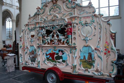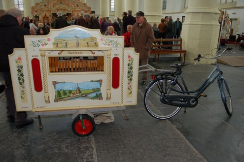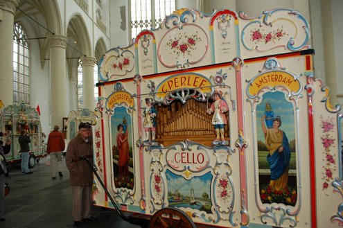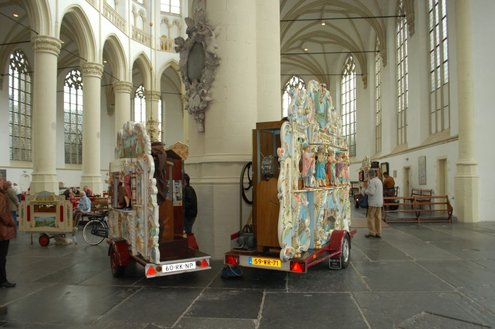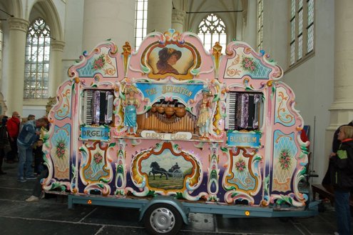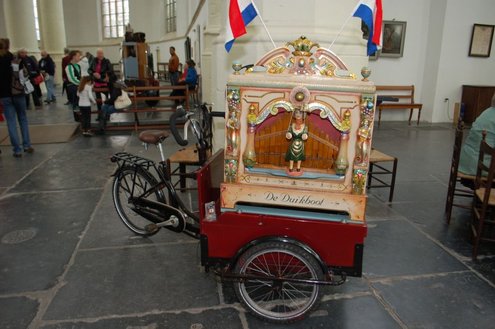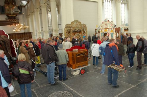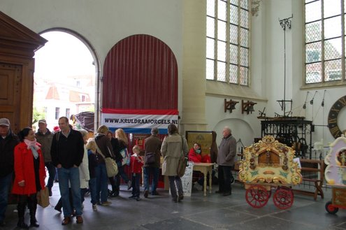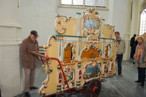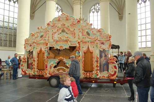 Onder het motto: “Zuinig zijn op dit erfgoed” vond vandaag voor de 15e keer de Leidse Draaiorgeldag plaats in en rondom de Hooglandse Kerk. Ook dit jaar was de belangstelling voor de grote en kleine pierementen groot. Speciaal voor deze dag gecomponeerde en op ‘boek’ gezette muziekstukken werden ten gehore gebracht en het publiek reageerde enthousiast. (Foto’s: Emile van Aelst)