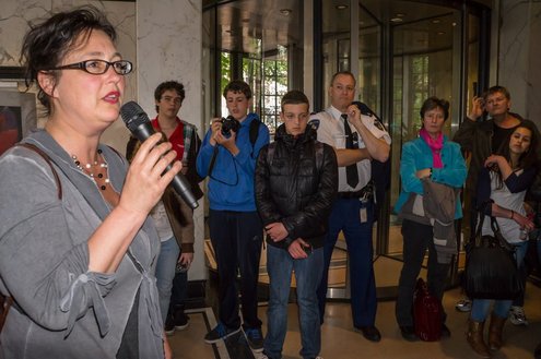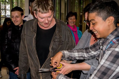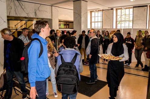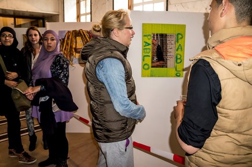 Gistermiddag opende wethouder Roos van Gelderen een bijzondere tentoonstelling met de titel ‘Ontmoetingen met dak- en thuislozen’ in het Leidse Stadhuis. De expositie laat interviews, geïllustreerd met tekeningen en foto’s zien, die gemaakt zijn door leerlingen uit de eerste en tweede klas van het VMBO van het Visser ’t Hooft Lyceum Leiden Zuid-West. De leerlingen bezochten dak- en thuislozen, cliënten van De Binnenvest, die ze ontmoetten in het Sociaal Pension en bij de Dag- en Nachtopvang. In woord en beeld delen zij hun ervaringen en worden levensverhalen van De Binnenvestcliënten geschetst. Het resultaat is te zien tijdens kantoortijden tot 30 juni; daarna reist de tentoonstelling verder langs diverse locaties.