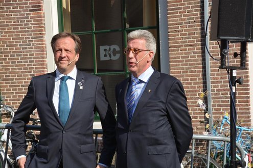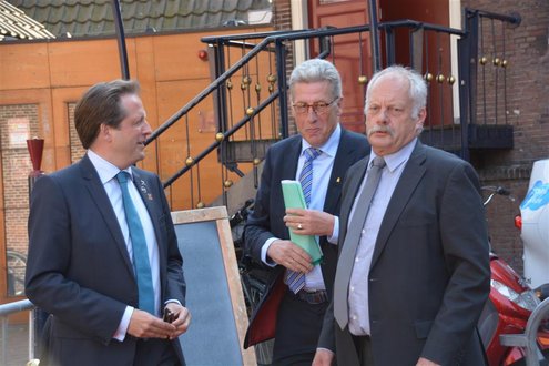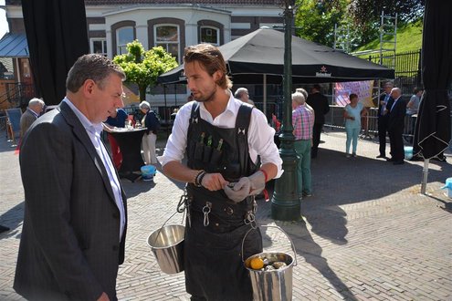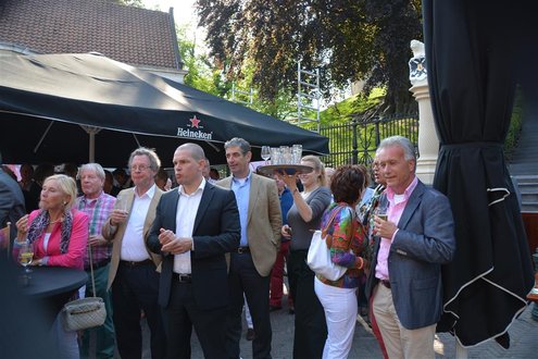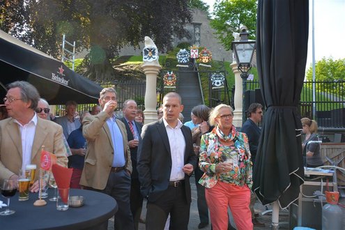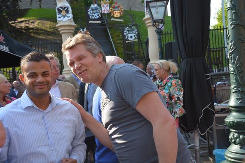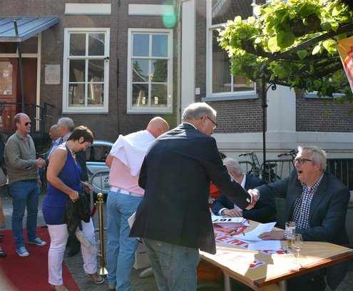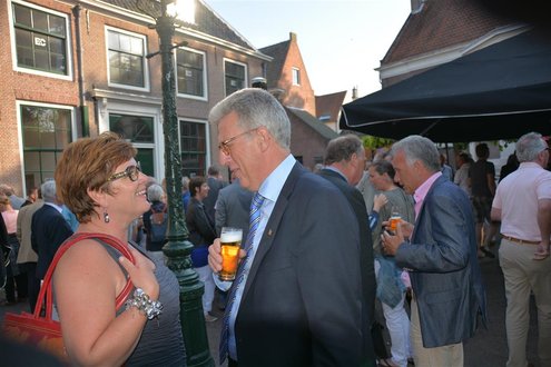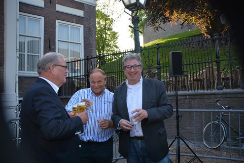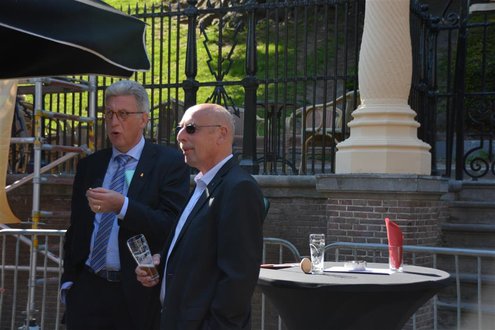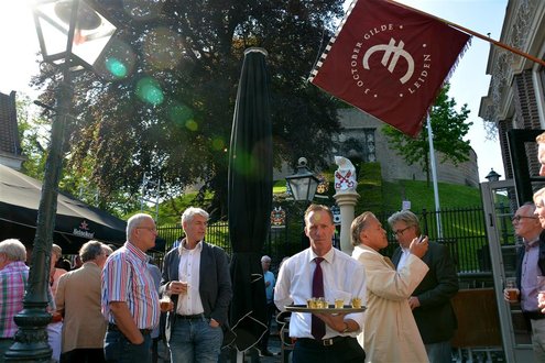 Gisteren werd traditiegetrouw de Haringparty van het 3 Octobergilde gehouden. De belangstelling was groot en op het zonnige terras van Koetshuis de Burcht was het goed toeven. Dat de haringen een jaar geleden werden ingevroren, omdat de nieuwe nog ondermaats zijn, mocht de pret niet drukken, een oestertje smaakte ook prima.