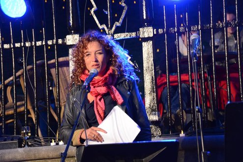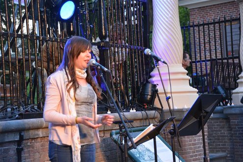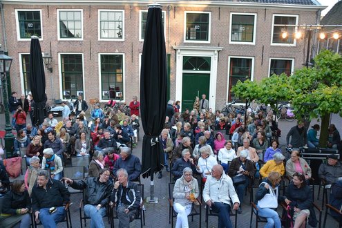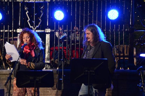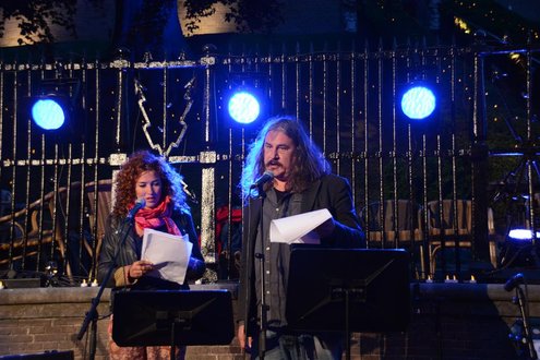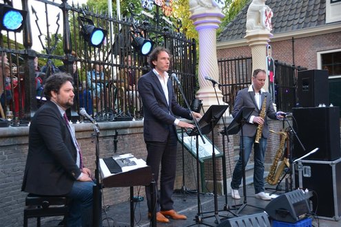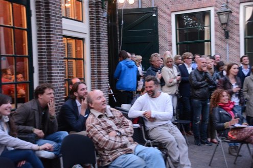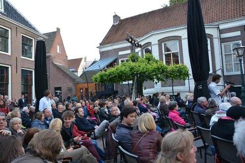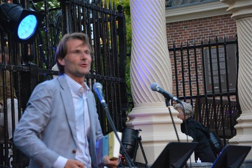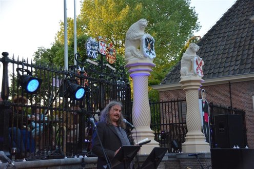 Gisteravond om 21.00 uur vond de afsluiting van de Signatuurweken (Cultuurweken) plaats aan de voet van de Burcht. Onder de titel ‘Leidse Olympus’ stelde literair journalist Onno Blom een boeiend programma samen, waarin onder andere Katja Schuurman, Thijs Römer, Mike Boddé, Ilja Leonard Pfeijffer en Jochem Myjer optraden. (Foto’s: Emile van Aelst.)