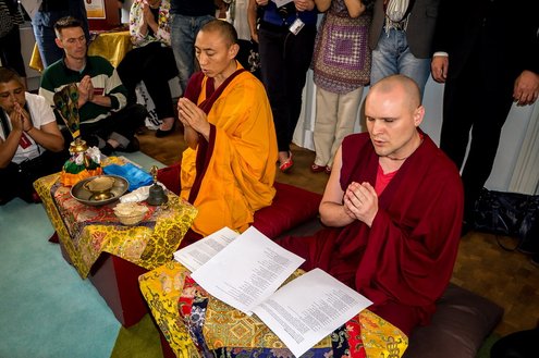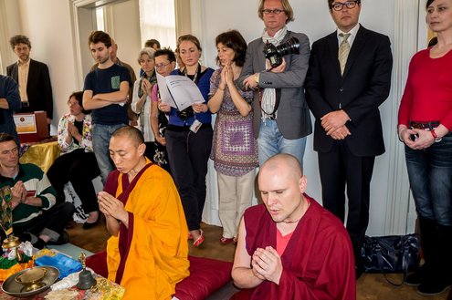 De reizende tentoonstelling Heart Shrine Relic Tour werd vandaag geopend in Museum Volkenkunde. Er zijn diverse bijzondere relikwieën van oude Boeddha’s te zien. Speciaal voor de opening kwamen er twee Lama’s uit Nepal naar het museum om mensen, kinderen en huisdieren te zegenen. De tentoonstelling werd geopend door middel van een boeddhistisch ritueel, een gebed van een kwartier lang. De belangstelling was groot.