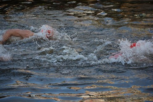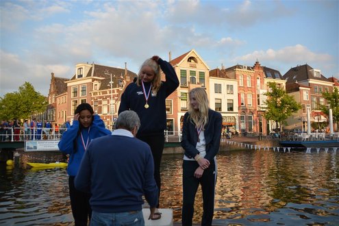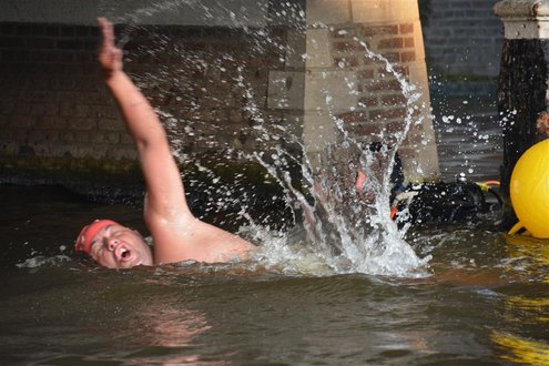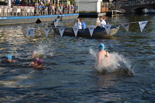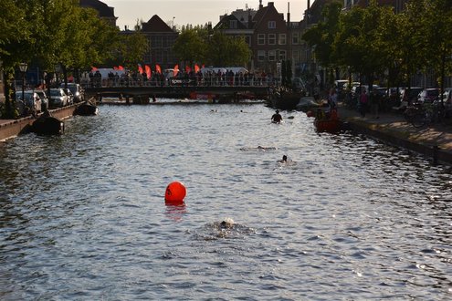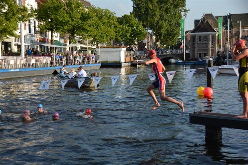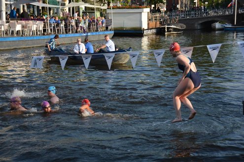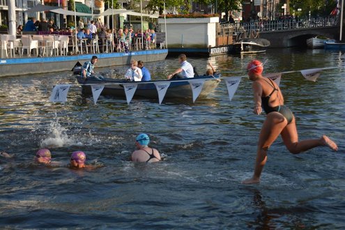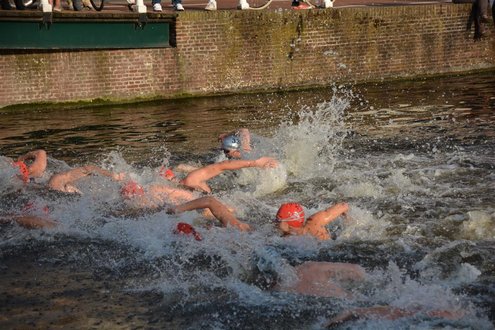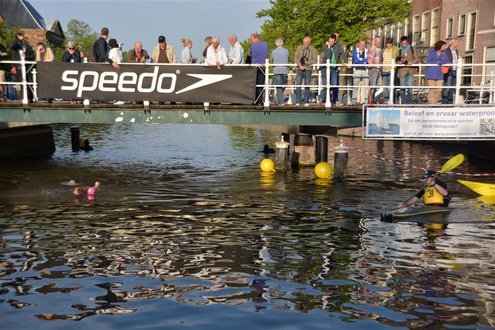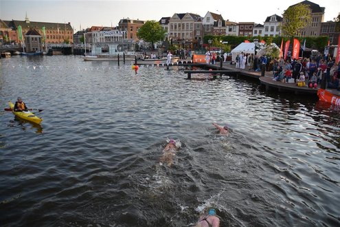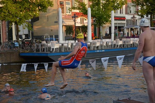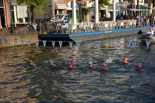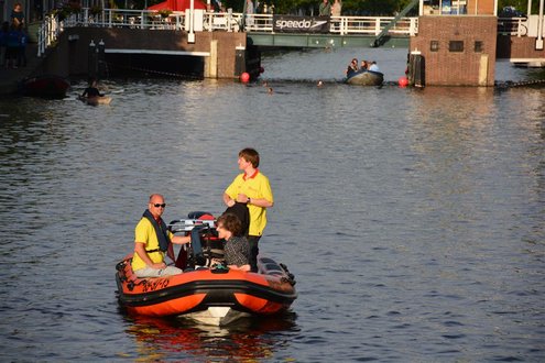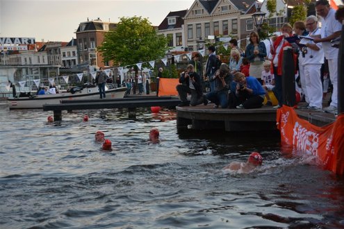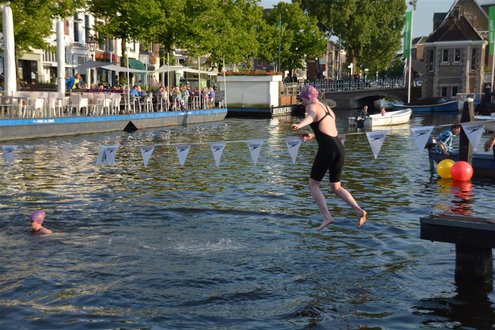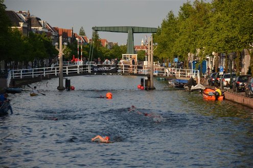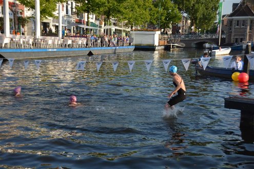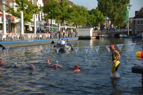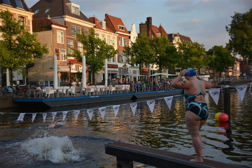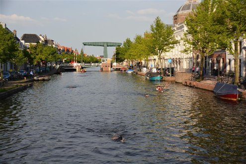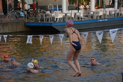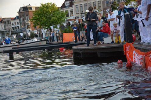 Gisteren werd voor de derde keer op rij de zwemmarathon Swim-In gehouden. Het was nog even spannend of het Leidse water de gewenste temperatuur van minimaal 16 graden zou halen, maar volgens organisator Ingmar Kooman zat dat wel goed. Het werd toch nog een redelijk koele duik voor de vele deelnemers aan de wedstrijden, estafette en prestatietochten voor junioren en gevorderden. Emile van Aelst nam een kijkje.
