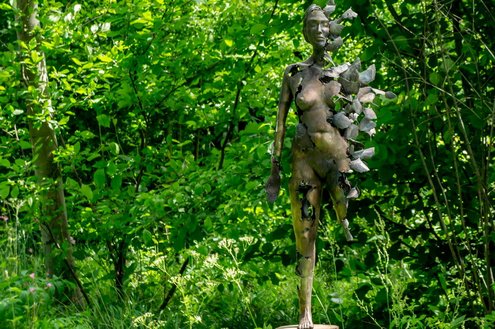 Wethouder Leo Maat opende gistermiddag de beeldenexpositie ‘De Heemtuin Verbeeld VI’. 11 lokale en landelijke kunstenaars hebben hun werk binnen het thema ‘Overvloed’ ter beschikking gesteld. Stichting Kunst in de Heemtuin wil met dit onderwerp het crisisgevoel te lijf gaan en laten zien dat er van alles in overvloed groeit en bloeit in het Leiderdorpse park, inclusief kunst.