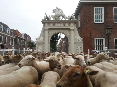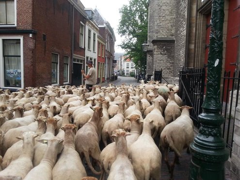 Begin deze maand hield GroenLinks-raadslid Walter van Peijpe een vurig pleidooi om, naar Rotterdams voorbeeld, schapen in te zetten als biomaaier in Leidse stadsparken en plantsoenen. Vandaag kreeg hij zijn zin. Herder Elzo Hoexum loopt met zijn kudde al regelmatig in Polderpark Cronesteyn en trok op verzoek van TV West vandaag het centrum van Leiden in. De regionale zender maakte een reportage die één dezer dagen te zien zal zijn.