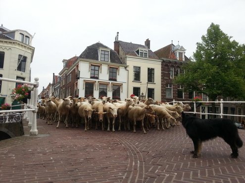 Via twitter wordt er flink gediscussieerd over de schapen in de stad. Niet iedereen vindt het een goed idee. Zo wijst een ‘herdersdochter’ er op dat schapen kwetsbare dieren zijn die niet in de stad thuishoren en wacht wethouder De Haan op de schriftelijke vragen van Van Peijpe’s partijgenoten over ‘nodeloos opgejaagde schapen over middeleeuws plaveisel’.