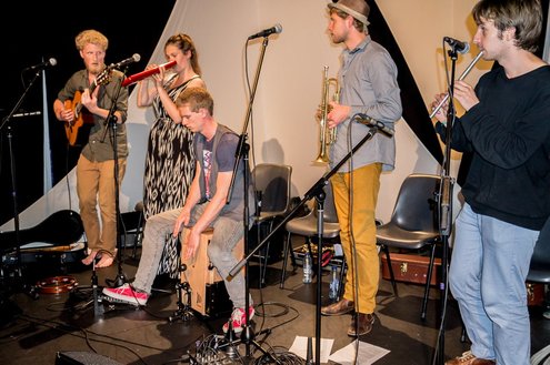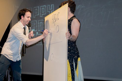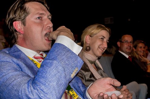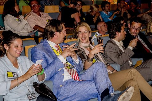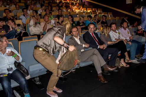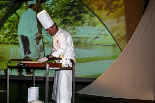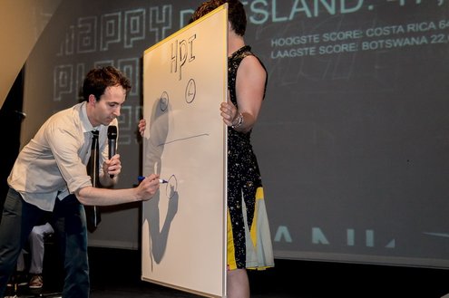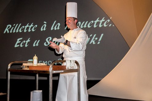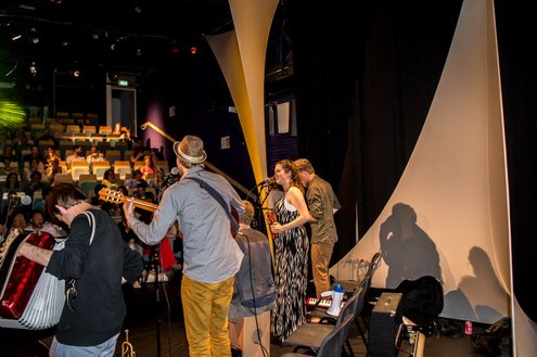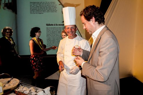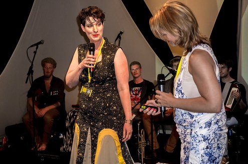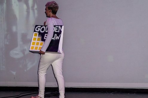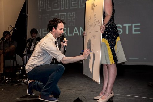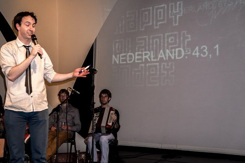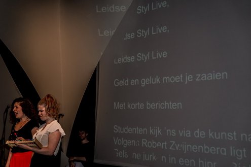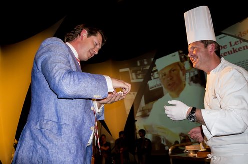 Gisteravond werd de Stadszomernachtsdroom gehouden in theater Ins Blau. Onder de titel 'Geld en Geluk' vond dit jaarlijkse feest van Stadslab plaats met een afwisselend programma, voorzien van een culinair tintje. De multimediale voorstellingen werden als ‘Leidse Stijl Live’ in een sneltreintempo gepresenteerd. Chefkok Wilfred Tegelaar van Woods bereidde onder het toeziend oog van het publiek bijzondere hapjes, gemaakt van Leidse meeuwen, misschien wel dé oplossing voor het meeuwenprobleem in de Sleutelstad. Het publiek was niet direct erg happig;in werkelijkheid bleek gans het ingrediënt te zijn. (Foto’s: J.P.Kranenburg.)