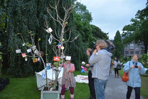 Gisteren vond traditiegetrouw het Midzomernachtfeest en het OpenluchtHotel plaats in de Leidse Hortus. Het was de langste dag van het jaar en in de sprookjesachtige schemering werden bezoekers verwelkomd met muziek, dans, theater en kunst in tropische sferen. De weergoden hielden zich nog even gedeisd en na het avondvullende programma kon de kortste nacht van het jaar doorgebracht worden in de openlucht tussen het weelderige groen van de tuinen. (Foto’s: Emile van Aelst.)