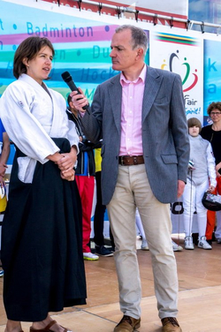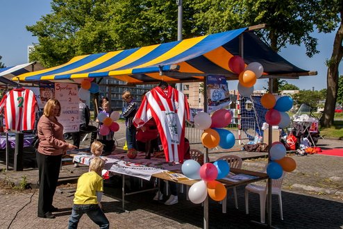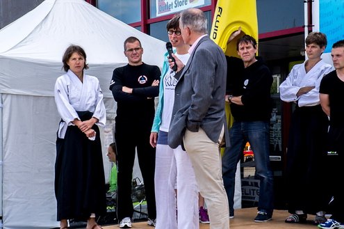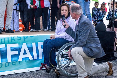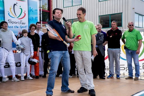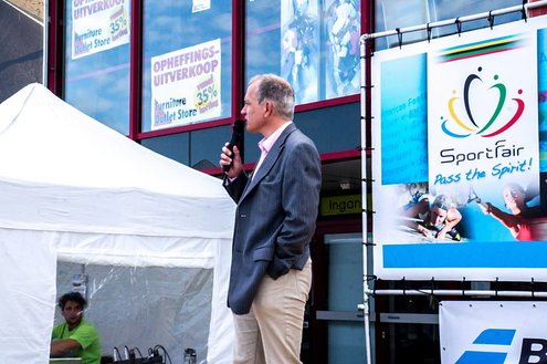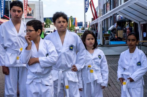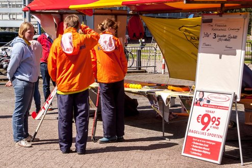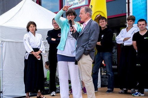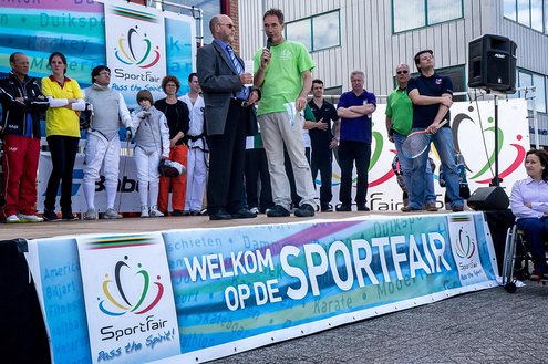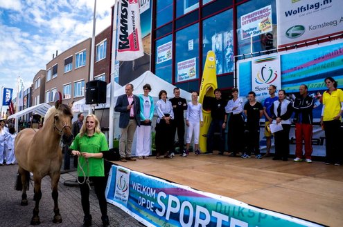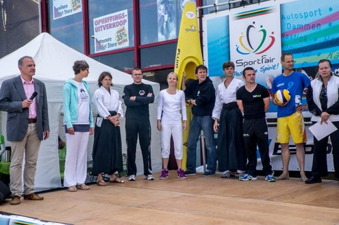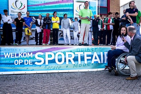 Terwijl in de Sleutelstad de laatste dag van de Leidse Lakenfeesten werd gehouden, vond in Leiderdorp de eerste SportFair plaats bij woonboulevard de Baanderij. De speciale promotiedag voor diverse takken van sport en bestemd voor alle leeftijdsgroepen, trok veel bezoekers. Sportverenigingen gaven demonstraties van topsporters en regionaal talent, proeftrainingen en andere activiteiten waarbij het publiek actief mee kon doen. De SportFair werd geopend door wethouder Zilverentant. (Foto’s: J.P.Kranenburg.)