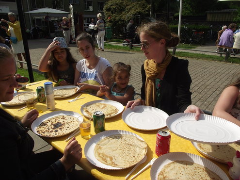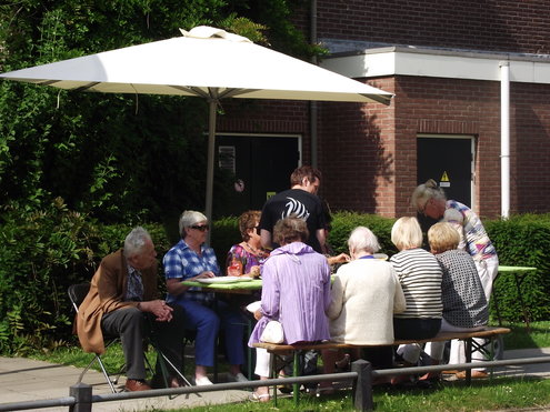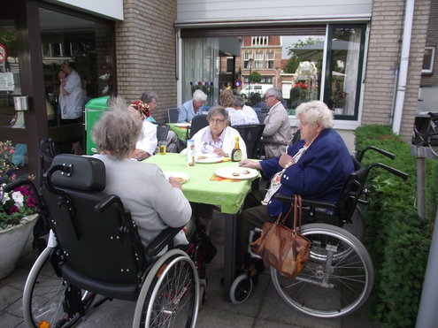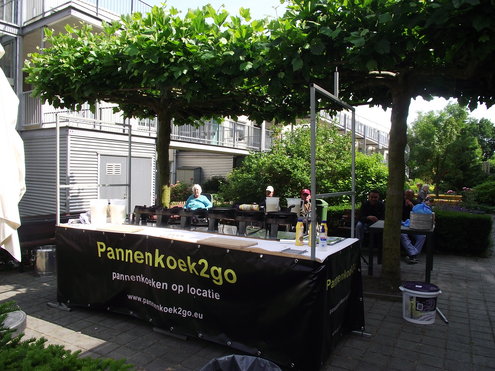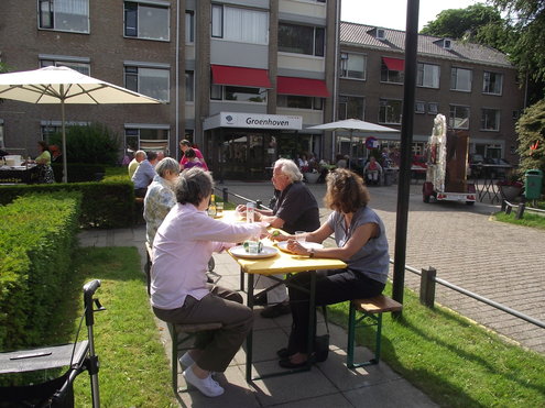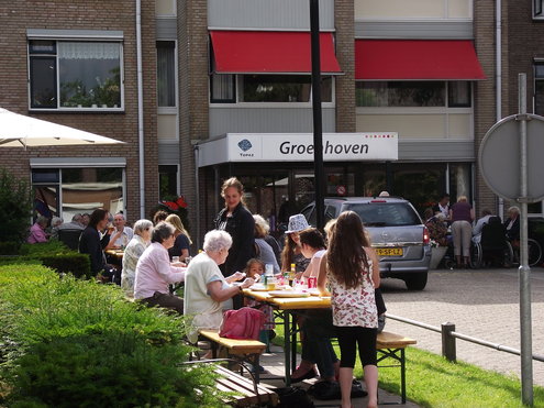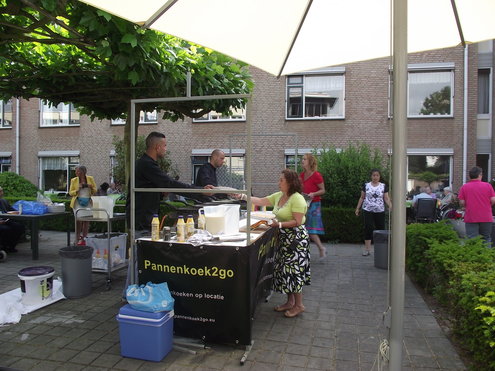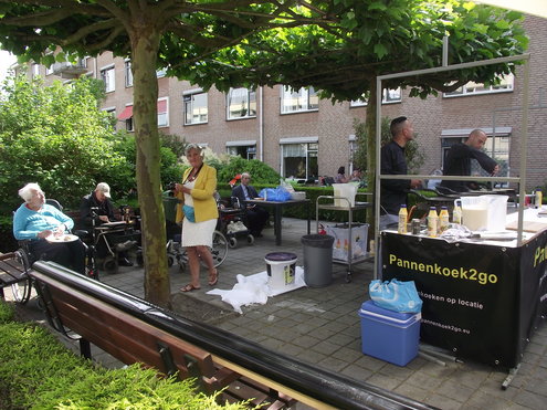 Gistermiddag was het feest bij woonzorgcentrum Groenhoven aan de Witte Rozenstraat. Bewoners, familie, vrienden en buurtgenoten smulden van de versgebakken pannenkoeken, een lekker drankje en gezellige muziek van het draaiorgel. Iedereen had het duidelijk naar de zin en petje af voor personeel en vrijwilligers, die heen en weer liepen met grote stapels pannenkoeken en drankjes; het was een geslaagd feestje! (Foto’s: Jacqueline Borg.)