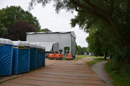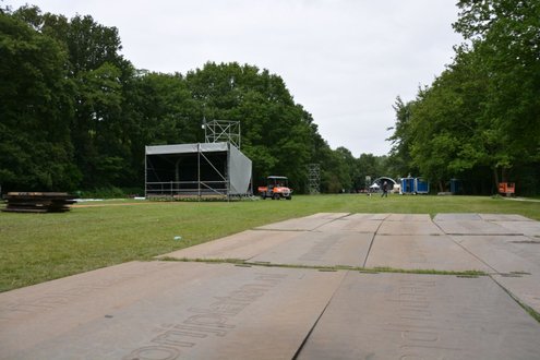 In de Leidse Hout zijn de voorbereidingen voor de 32e editie van Werfpop, die aanstaande zondag plaatsvindt, alweer in volle gang. De toegang tot het festival met nationale en internationale bands, theater, markt en divers ander vermaak is gratis. De weersvooruitzichten zijn goed en met het nieuwe grasveld zullen de bezoekers dit jaar dan ook zeer waarschijnlijk droge voeten houden. Emile van Aelst nam alvast een kijkje in het park. Meer info en volledig programma: www.werfpop.nl