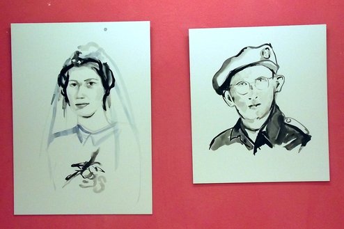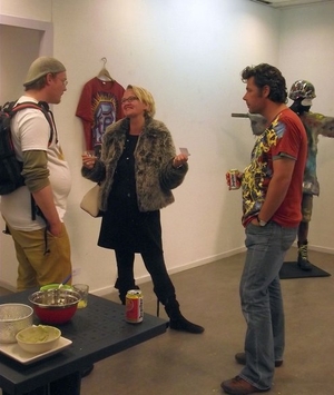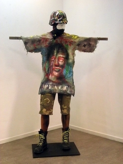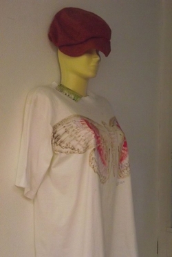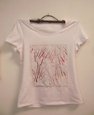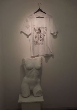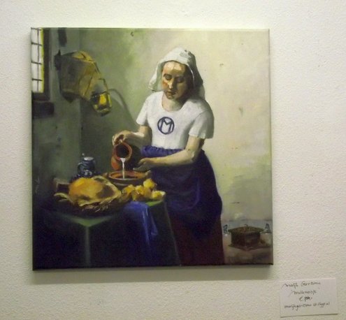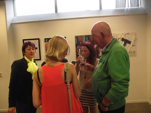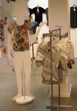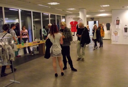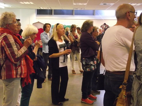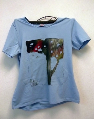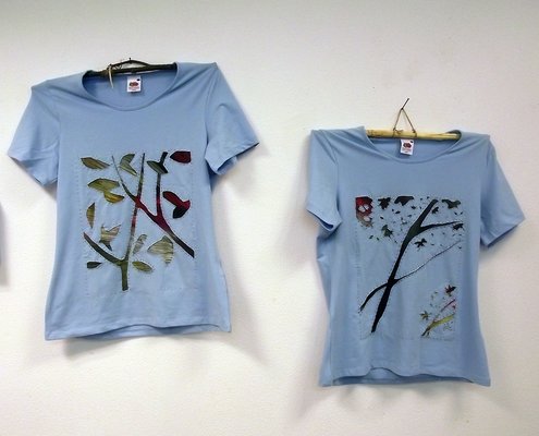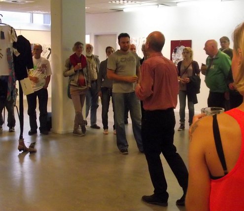 In Galerie De Pieter vond afgelopen vrijdag de feestelijke opening plaats van de zomertentoonstelling ‘T-Shirts’. De belangstelling was groot voor de vele varianten van dit overbekende kledingstuk, uitgevoerd door ruim 40 voornamelijk Leidse kunstenaars. De draagbaarheid liet wel wat te wensen over soms, zoals een prachtig shirt van lepels, vorken en ander bestek, beschilderd jute, een kanten basketbalnet en exemplaren van krantenpapier. Genoeg te zien op een mooi ingerichte tentoonstelling, die in de weekenden tot 11 augustus te bewonderen is. Meer info en openingstijden: www.galeriedepieter.nl (Foto’s: H. v.d. Werf)
