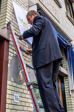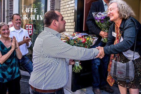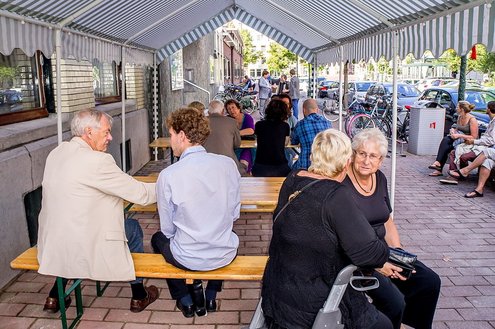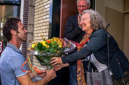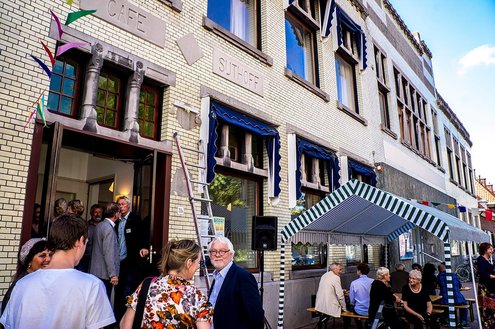 Vanmiddag opende burgemeester Lenferink het nieuwe café-restaurant Sijthoff en de bijbehorende Cultuurzaal. Twee jaar lang is er gebouwd en verbouwd aan het markante pand aan de Doezastraat, waar vroeger de gelijknamige drukkerij gevestigd was. Aan de voorkant op de begane grond is een ecologisch café-restaurant gerealiseerd, aan de achterzijde bevindt zich de nieuwe Cultuurzaal. Sijthoff nieuwe stijl is bedoeld als ontmoetingsplaats waar exposities, muziek- en toneeluitvoeringen, cursussen en workshops plaatsvinden. De feestelijke opening werd muzikaal omlijst door accordeonist Arkadi en Marjolein Hennes met haar strijkkwartet, afgewisseld door Simon van t Hoff op piano. (Foto’s: J.P.Kranenburg.)