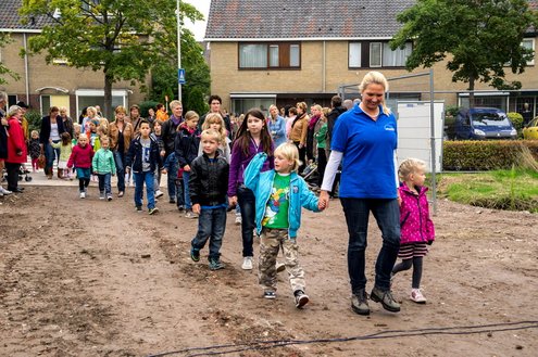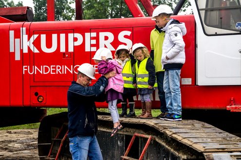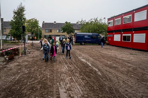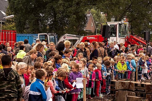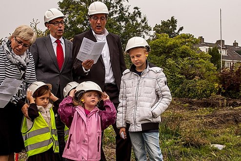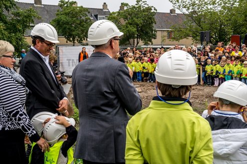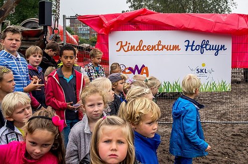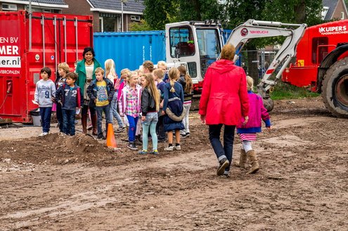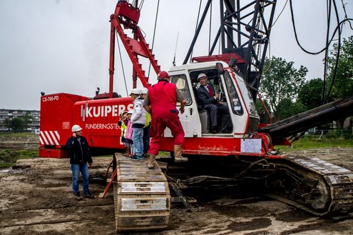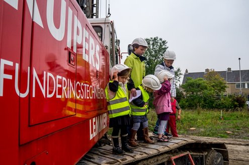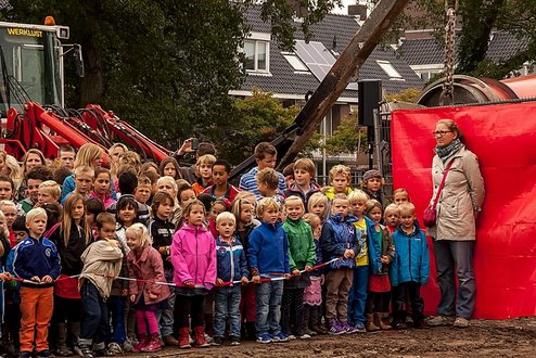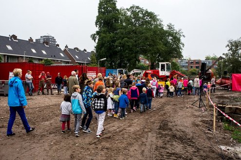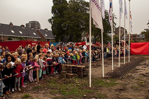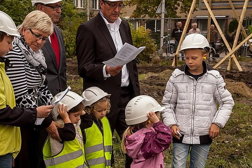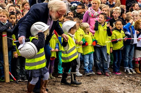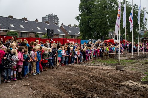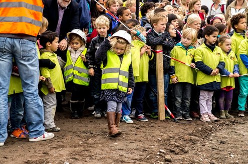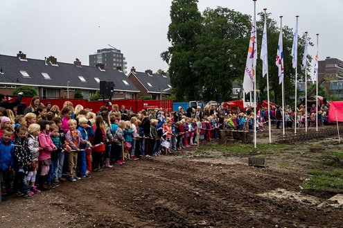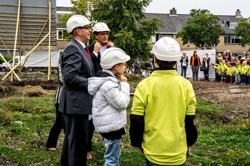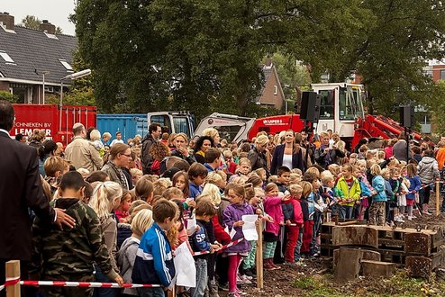 Bij de bouwplaats op de hoek van de Leeuwerikstraat en de Vronkenlaan heeft wethouder Kees Wassenaar gisteren de eerste paal geslagen voor de bouw van de nieuwe Brede School in Leiderdorp. Kinderen van de nieuwe scholen, personeel van de kinderopvang, leerkrachten, begeleiders en omwonenden waren allemaal aanwezig bij de start van de bouw.