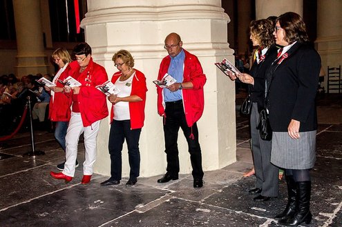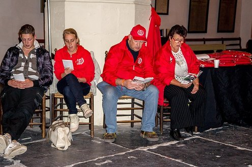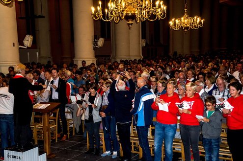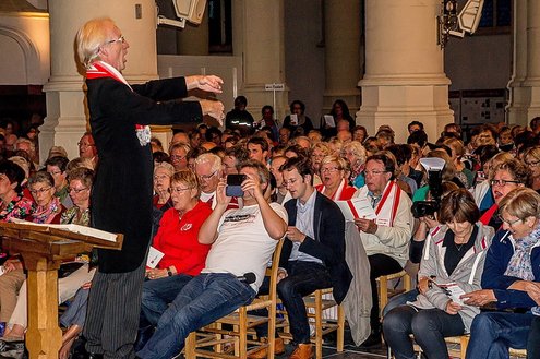 Onder de koraalzangers was ook burgemeester Lenferink die als het even kan nooit verstek laat gaan bij het oefenen. Ook hij ziet met genoegen dat het elk jaar drukker wordt: “En we kunnen nog flink doorgroeien hoor. Als we de kerk anders indelen met het orkest in het midden kunnen er wel 2000 mensen in. Dat doen we met de El Cidweek ook”.