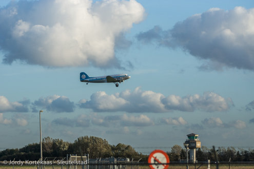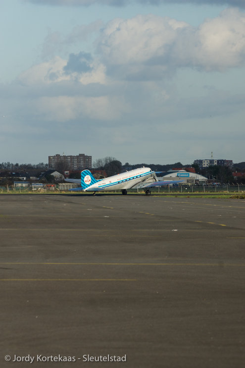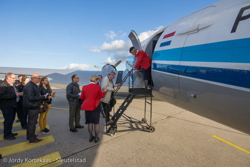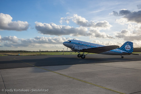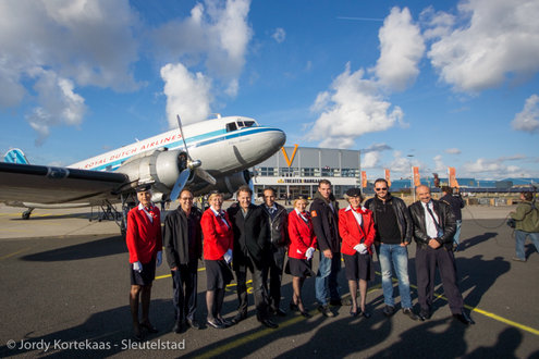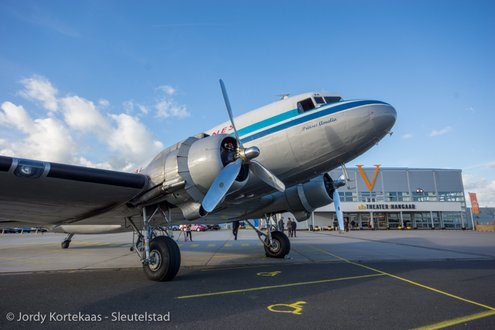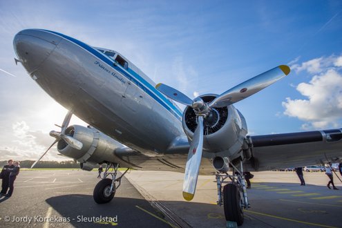 De historische Dakota werd woensdagmiddag ingezet ter verhoging van de feestvreugde bij het driejarig jubileum van Soldaat van Oranje - De Musical. (Foto's: Jordy Kortekaas).