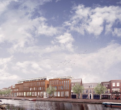 Een impressie van de nieuwbouw, gezien vanaf de Apothekersdijk. (Afbeelding: PR).