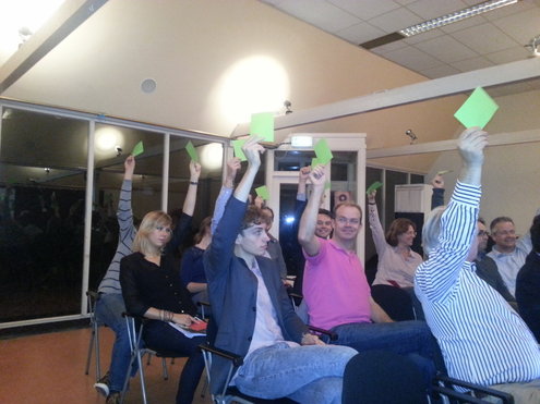 Maar liefst 70 wijzigingsvoorstellen werden er behandeld tijdens de ledenvergadering waar D66 Leiden het verkiezingsprogramma vaststelden. (Foto's: Chris de Waard).