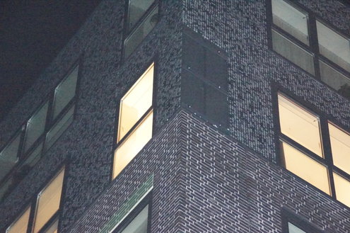 Een harde knal gevolgd door glasgerinkel. De bewoners van de appartementen boven de brede school Het Gebouw dachten rond 22.00 uur vanavond in eerste instantie aan een vuurwerkbom, maar toen ze verder keken, bleek dat een glazen gevelplaat van de vierde verdieping naar beneden was gekomen. Het Arubapad naast Het Gebouw was bezaaid met stukjes glas.