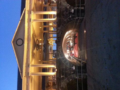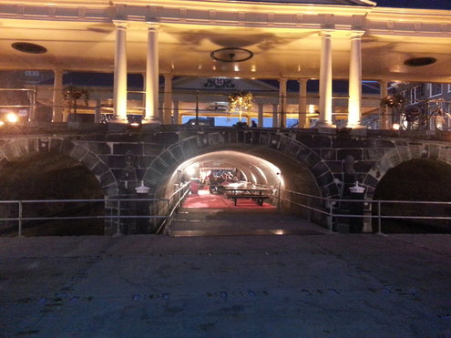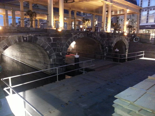 Ook onder de Koornbeursbrug liggen pontons. Zo kunnen de bezoekers makkelijk van de kerstmarkt naar de ijsbaan en weer terug lopen. (Foto's: Chris de Waard).