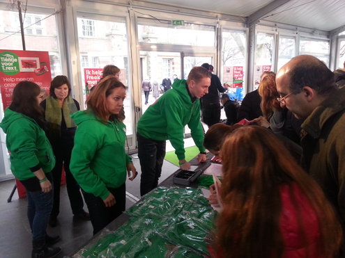 Zomaar een foto met de dino maken kan wel, maar veel leuker is het om mee te doen aan de crowdfundingactie. Voor een tientje krijg je dan een officieel certificaat van eigendom voor een stukje T. rex. Wie 30, 50 of zelfs 100 euro meebetaalt, krijgt naast het certificaat ook een cap, t-shirt, polsbandje, vrijkaartjes voor de expositie (zodra de echte T. tex in Leiden staat) en een ‘Meet ’n Greet’ met Freek Vonk.