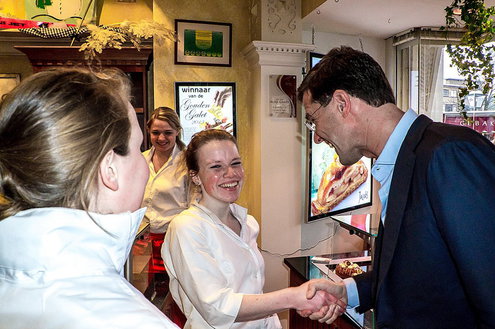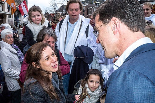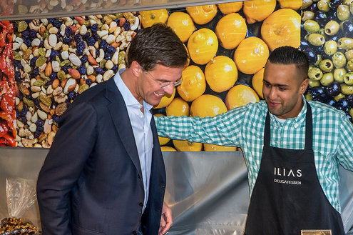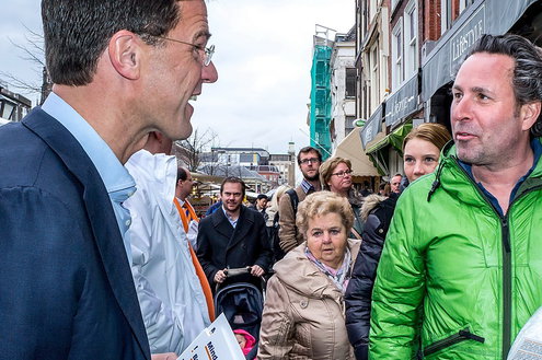 Vandaag liep de premier over de markt in Leiden om in gesprek te gaan met ondernemers. Rutte: ‘Ik vind het gaaf om hier te zijn en de mensen een hart onder de riem te steken’. De markt is volgens hem de beste plek om campagne te voeren omdat er veel ondernemers zijn.