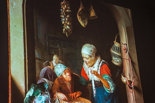 Tot en met 31 augustus zijn 14 werken van Gerrit Dou te zien. Samen met twee schilderijen uit de omgeving van Dou, twee schilderijen van Dou’s leerling Dominicus van Tol en een zeldzaam vroeg schilderij van zijn meest talentvolle leerling Frans van Mieris. Tijdens een rondleiding vertelt conservator Christiaan Vogelaar dat Gerrit Dou een meester was in het schilderen van het alledaagse. Vooral werkende vrouwen zette hij op sublieme wijze op het doek. Daarnaast heeft zijn werk een flonkering, een kleurgebruik en een gedetailleerdheid waarmee het virtuoze talent van Dou al vroeg opviel tijdens zijn opleiding bij Rembrandt. Dou is de grondlegger van de Leidse Fijnschilders, waar ook zijn leerling Frans van Mieris toe behoorde. Vogelaar nodigt het publiek uit om een vorm van ‘slow kijken’ voor het werk van Dou toe te passen: hoe langer je naar een schilderij kijkt, zoals ‘Haringverkoopster met jongen’, hoe meer details je ziet.
