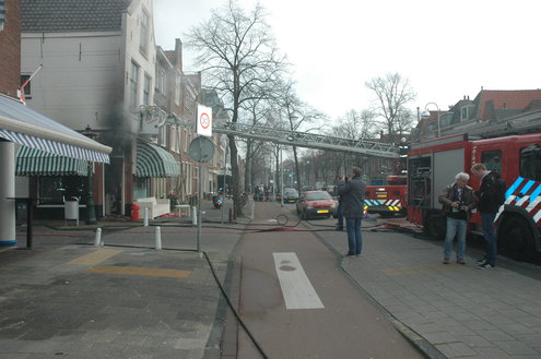 De brandweer is met groot materieel bezig met het blussen van een brand bij snackbar Risa aan het Levendaal. Ook de woningen naast de snackbar en in het eerste stuk van de Kraaierstraat en de achtergelegen Dwarsbolwerksteeg worden door de brandweer goed in de gaten gehouden. Hoewel de kans op doorslag naar die woningen voorbij lijkt te zijn, durft de brandweer die mogelijkheid ook nog niet uit te sluiten.