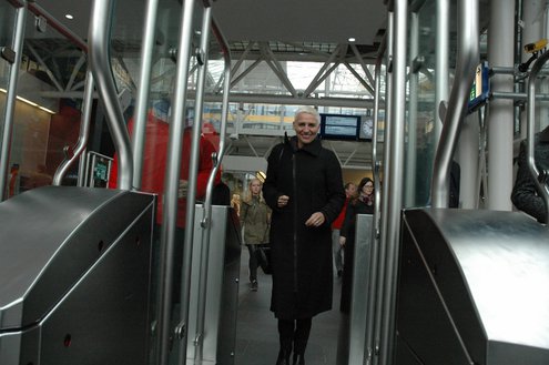 Staatssecretaris Wilma Mansveld (PvdA, infrastructuur & milieu) kwam vanmiddag in Leiden kijken bij de ov-poortjes. Of ze open, dicht of weg moeten wilde ze niet zeggen. Wel dat ze van de NS had gehoord dat ze sowieso open blijven tot 1 januari 2016. (Foto's: Chris de Waard).