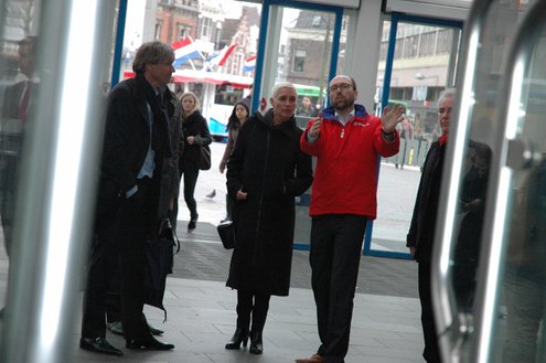 Concrete toezeggingen leverde het werkbezoek dat PvdA-staatssecretaris Wilma Mansveld (Infrastructuur en Milieu) vanmiddag bracht aan station Leiden Centraal niet op. Wel meer duidelijkheid over de ov-poortjes. Mansveld kwam naar Leiden op uitnodiging van PvdA-lijsttrekker Gijs Holla die zich al jaren druk maakt over – vooral – de plek van de poortjes. Het liefst wil Holla paaltjes in plaats van poortjes, maar als dat niet kan, dan moeten de poortjes in elk geval zo worden geplaatst dat niet-reizigers ongehinderd van de stads- naar de zeezijde van het station kunnen lopen.