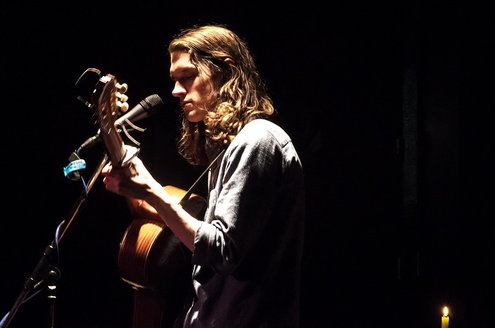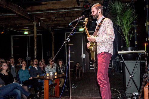 Het publiek laat zich in het eerste deel van het programma bijna ademloos meeslepen bij de wat donkere klanken en stemmige gitaarmuziek van Van der Lee. Met zijn karakteristieke stem kleurt hij uit het leven gegrepen somberheid in met lichtpuntjes.