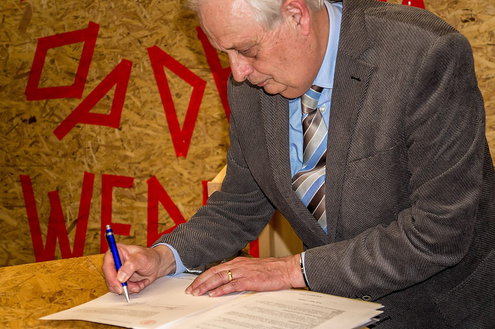 De winst van de fusie zit hem volgens minister Bussemaker in de samengevoegde ‘back office’. Die komt trouwens in Leiden. Het belang van de Sleutelstad als kenniscentrum neemt daardoor verder toe. Ontwikkelingen die worden toegejuicht door cultuurwethouder De Haan en universiteitsbaas Carel Stolker die vanmiddag – net als minister Bussemaker – bij de officiële handeling aanwezig waren.