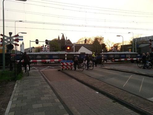 Bij de Morsweg en de Telderskade gingen de overgangen op slot in verband met werkzaamheden (Video: Chris de Waard).