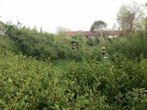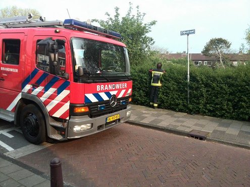 Vanmiddag kreeg de brandweer een melding over een buitenbrandje aan de Damlaan in Leiden. Het bleek te gaan om een fikkie in de door het Morsmonster bewaakte torteltuin op de hoek van de Damlaan, de Vondellaan en de Lage Morsweg. Op die plek stond tot media 2011 een in onbruik geraakt kerkgebouw. De buurt adopteerde het stukje grond en vergroende de wijk. (Foto's: Amando van der Heide).