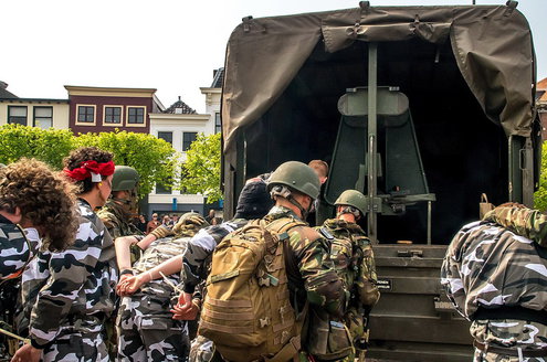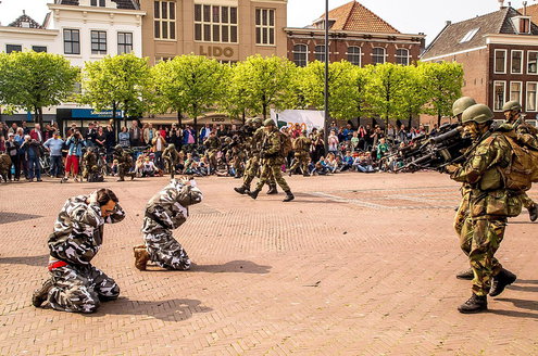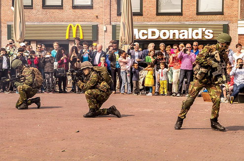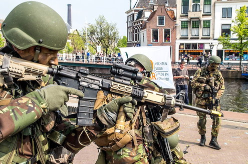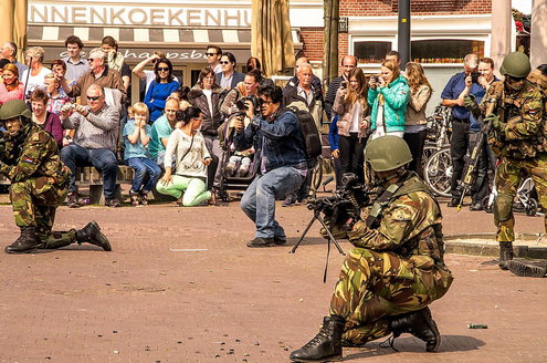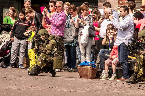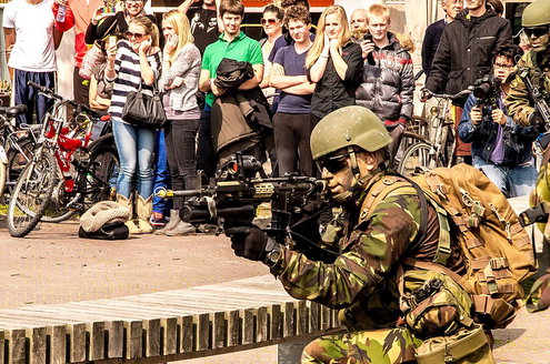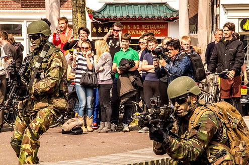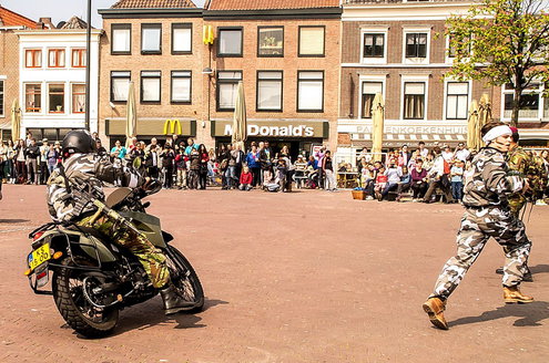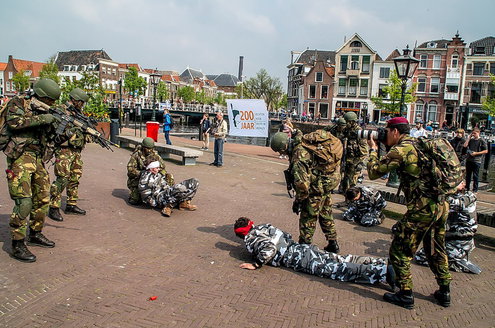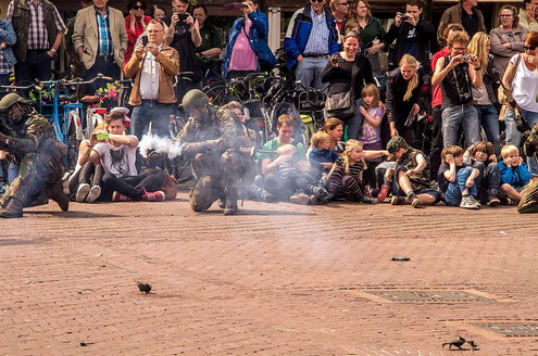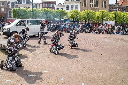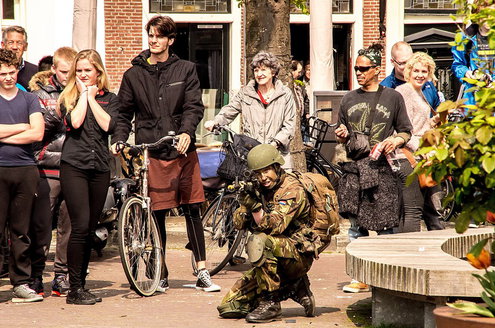 De Koninklijke Landmacht bestaat 200 jaar. Daarom waren er vandaag in het hele land verschillende activiteiten. In Leiden werden spectaculaire oefeningen gehouden tussen het publiek dat voor een deel van niets wist. “Ik schrok me dood,” is een veelgemaakte opmerking via de sociale media vandaag. De oefeningen gingen namelijk wel gepaard met de nodige schietpartijen en ook losse flodders maken herrie.