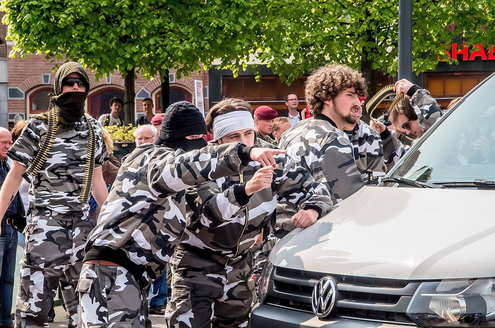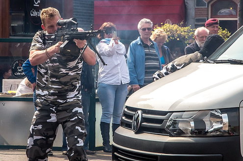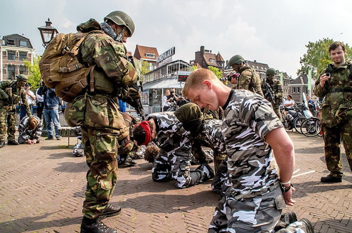 'Terroristen' worden op de Beestenmarkt door militairen van het Nederlandse leger overmeesterd. (Foto's: J.P. Kranenburg).